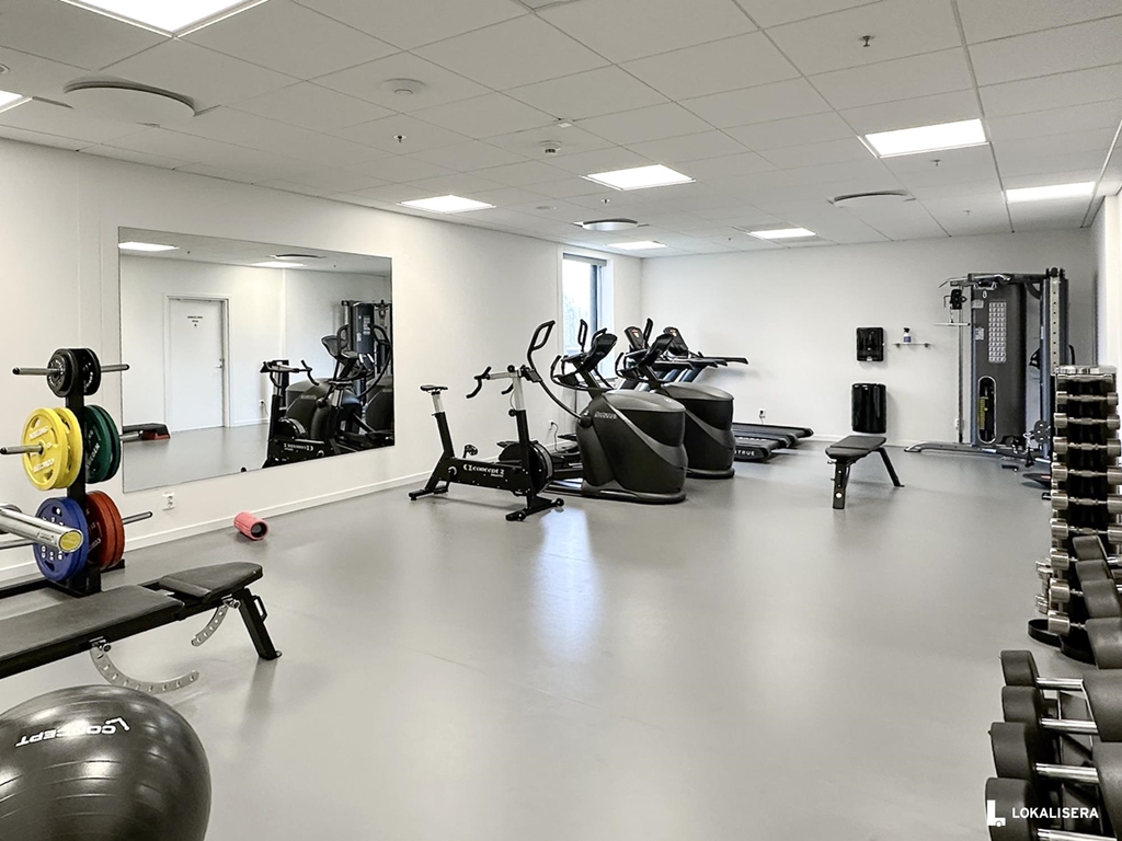 Fastigheten erbjuder dessutom gym med omklädningsrum, modern konferensvåning, goda parkeringsmöjligheter samt möjlighet att hyra garageplats med elbilsladdning.
