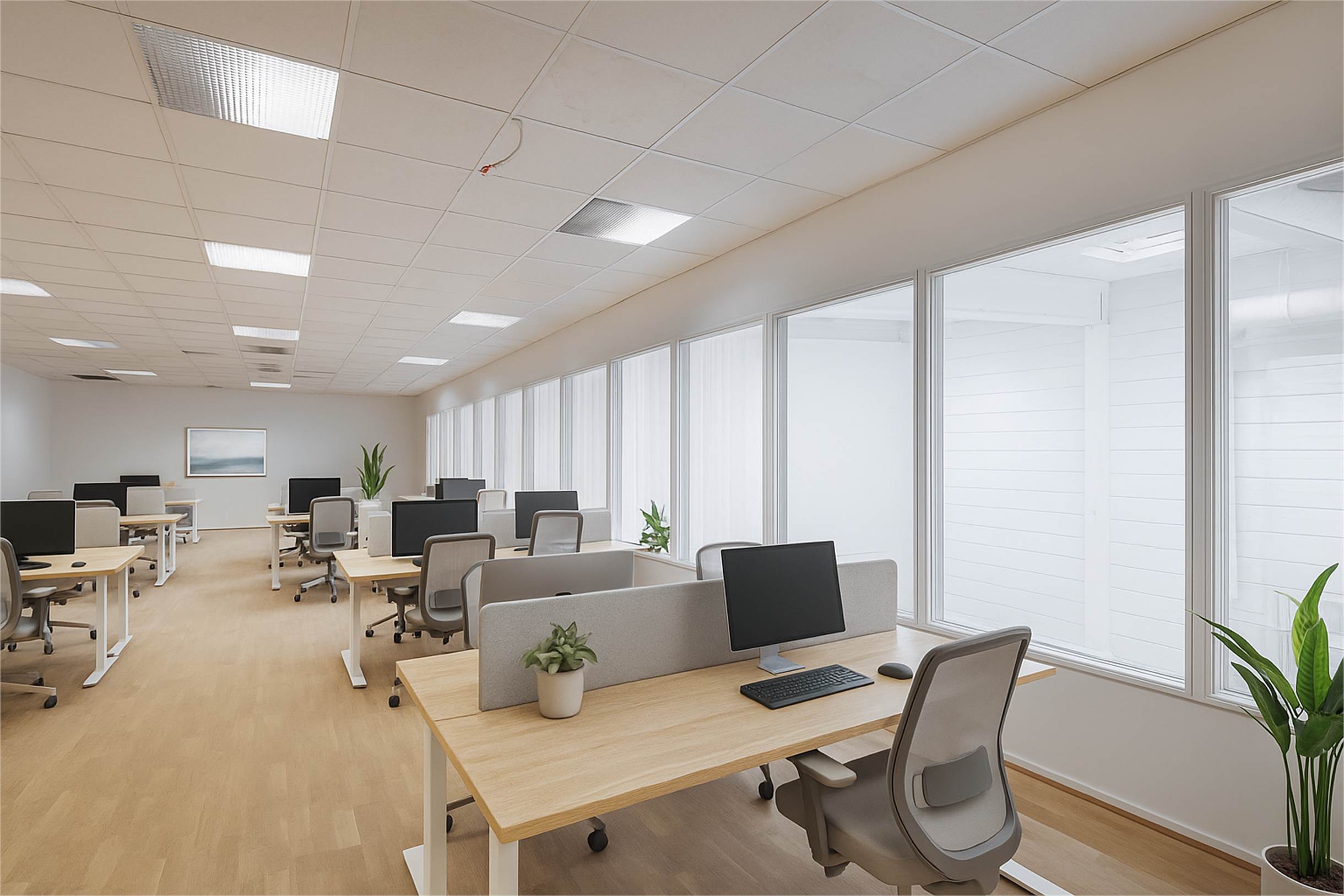 De anslutande kontorsytorna om 410 kvm är i mycket gott skick och är belägna på plan två. Kontoren erbjuder en bekväm arbetsmiljö med faciliteter som kök/pentry, pausyta och WC.
