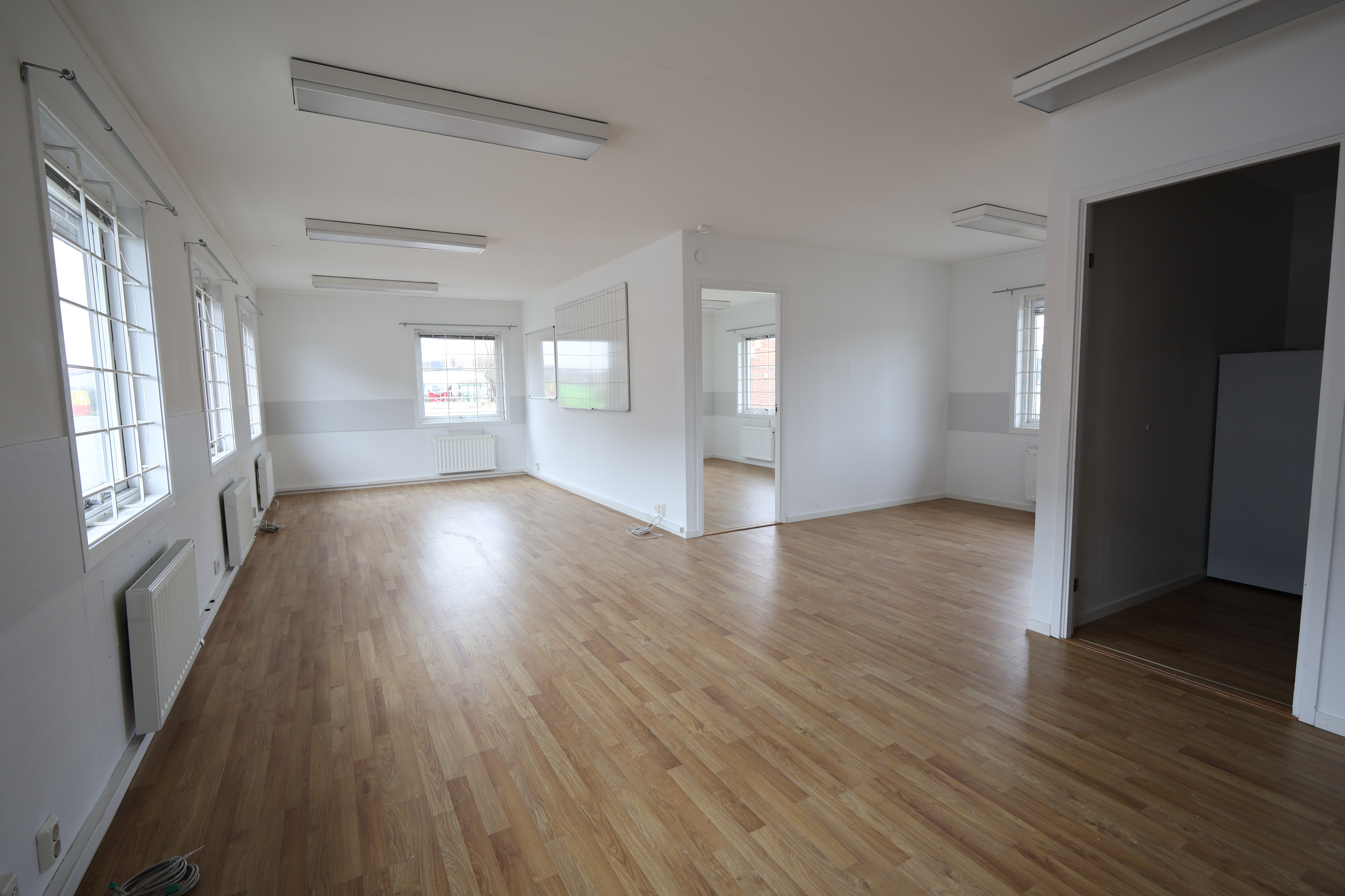 Kontorsdelen om ca 107 kvm erbjuder en praktisk och trivsam arbetsmiljö med goda möjligheter att anpassa efter verksamhetens behov.