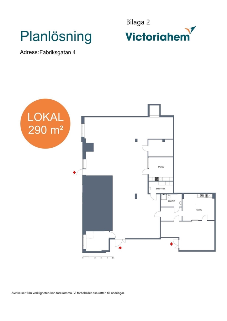 Lokalen består av en öppen butiksyta, två kontor, personalutrymmen, toaletter samt lagerutrymme. Lokalen kan anpassas efter hyresgästens önskemål.