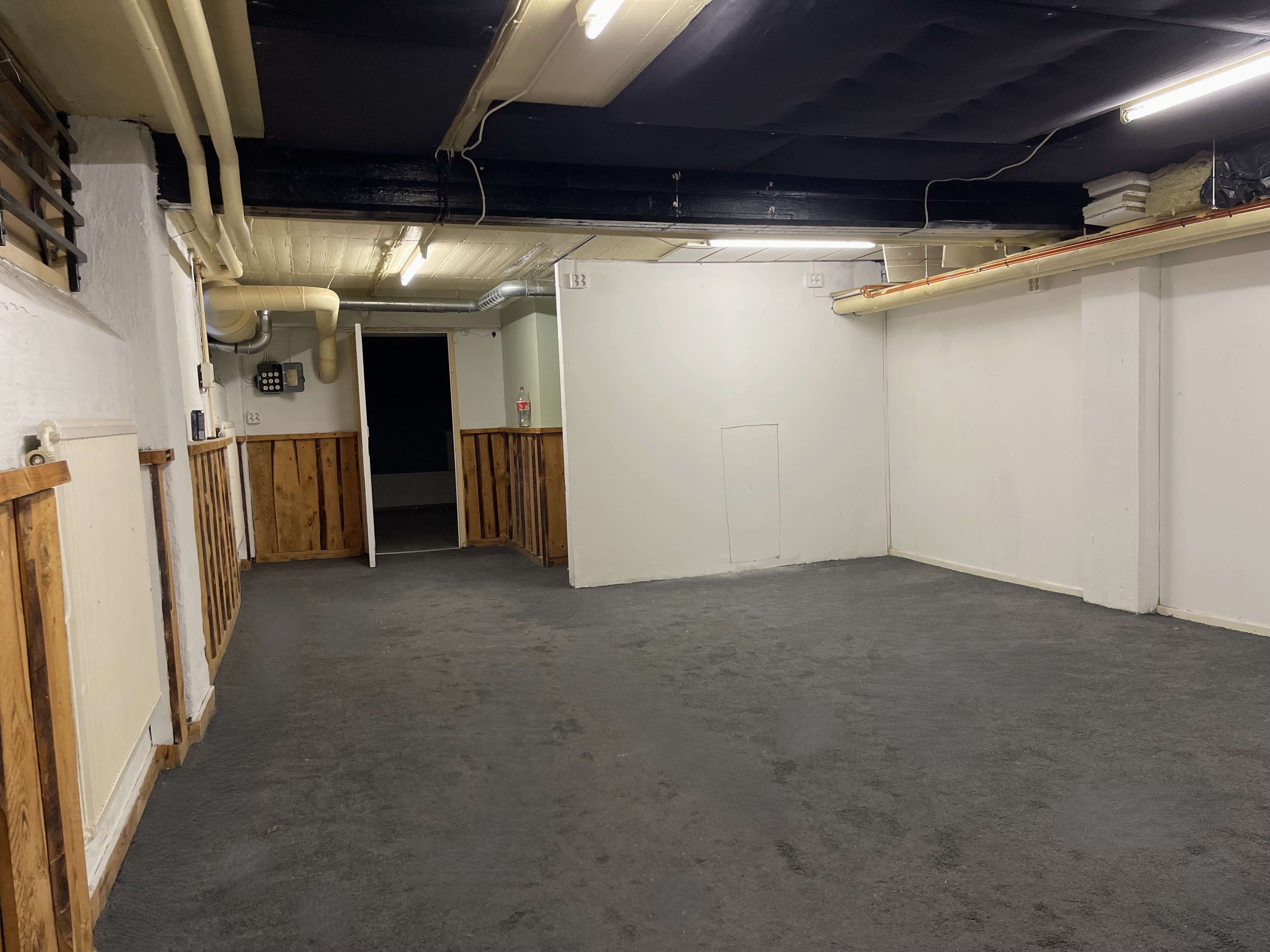 Källarlokal med ljusinsläpp på 70 kvm. Två toaletter, kök och parkering centralt. Passar som studio, lager, kontor eller annan hobbyverksamhet. 4300kr/mån