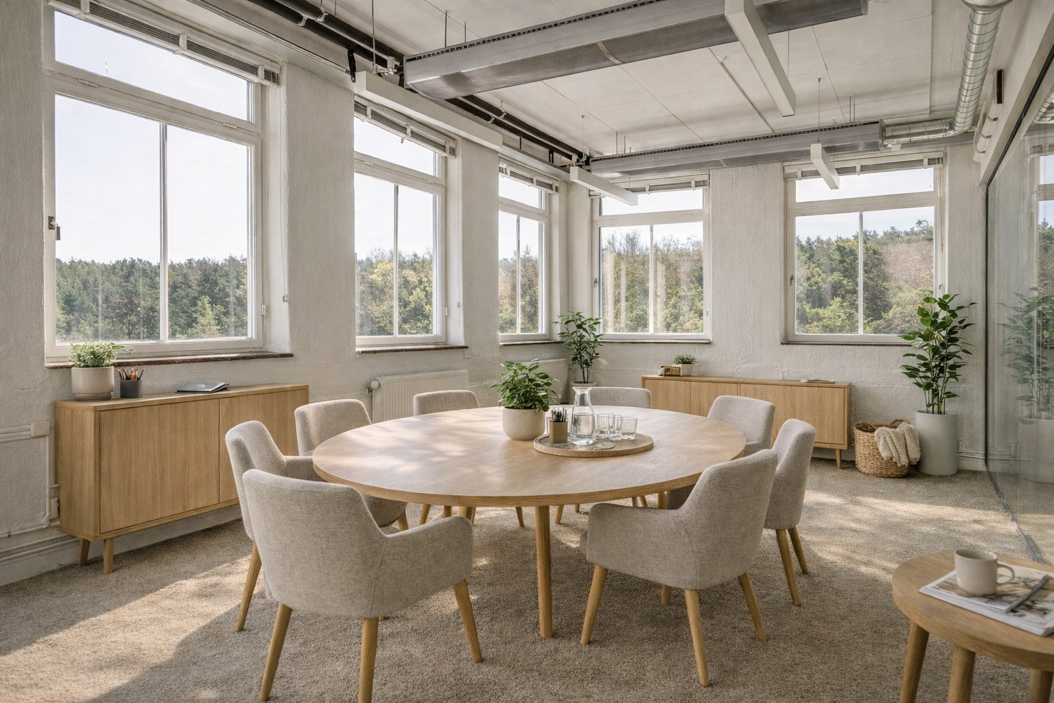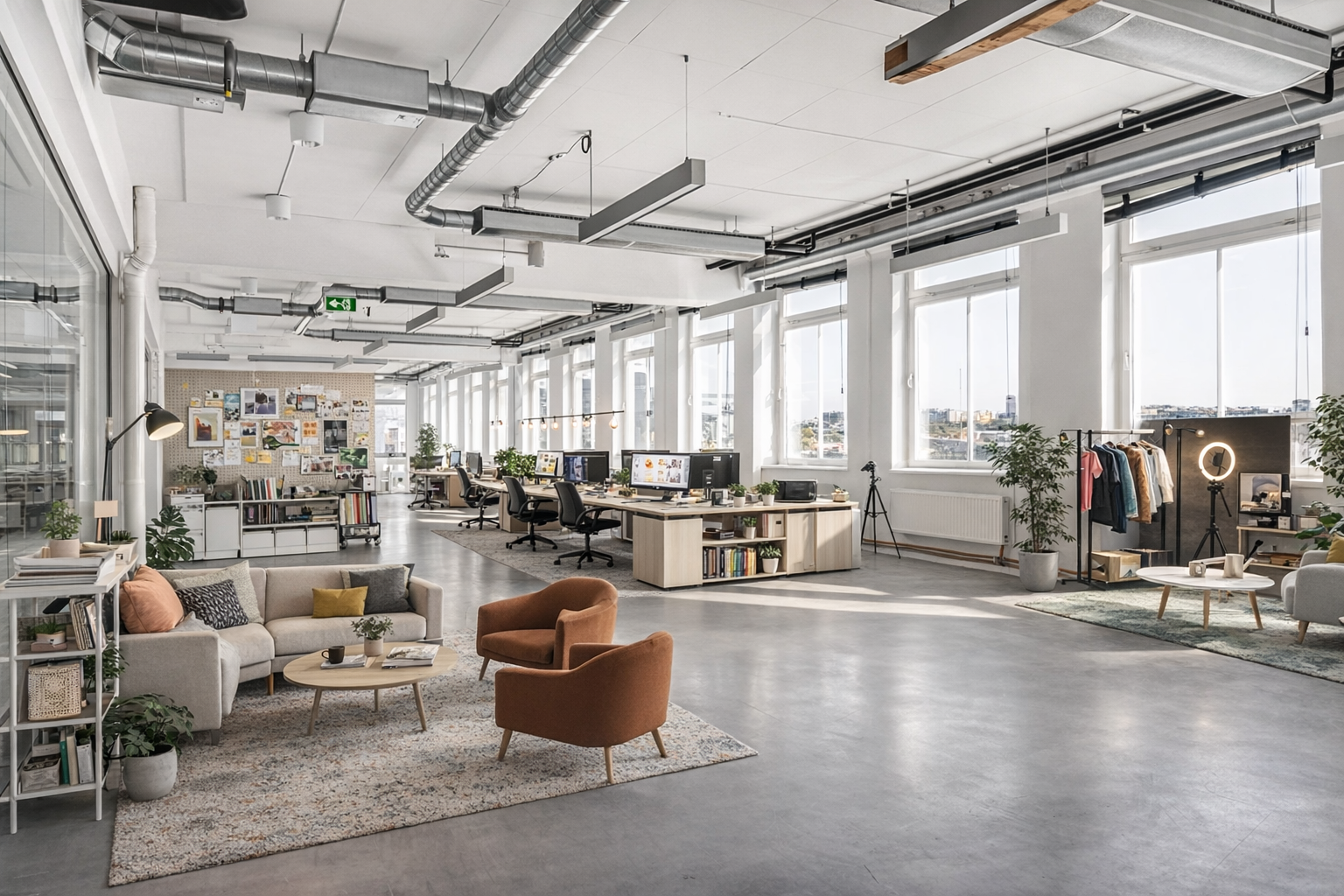 Högt belägen kontorslokal redo för ny hyresgäst.