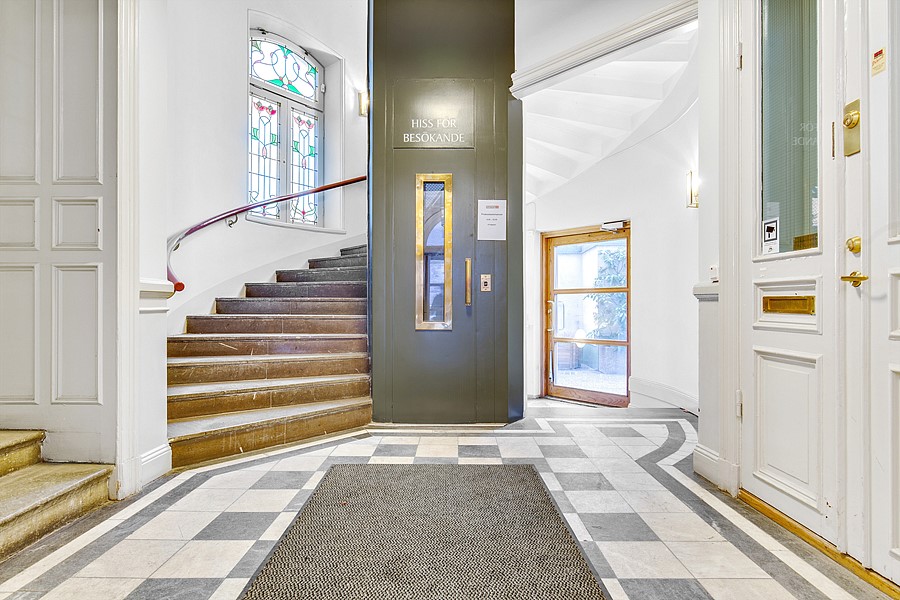 Stora fönsterpartier skapar ett härligt ljusinsläpp och det rymliga, moderna lunchrummet har plats för många. Entrén är stilfull, och lokalen nås smidigt via både hiss och trappa. Tillgång finns även till en trevlig gemensam innergård.