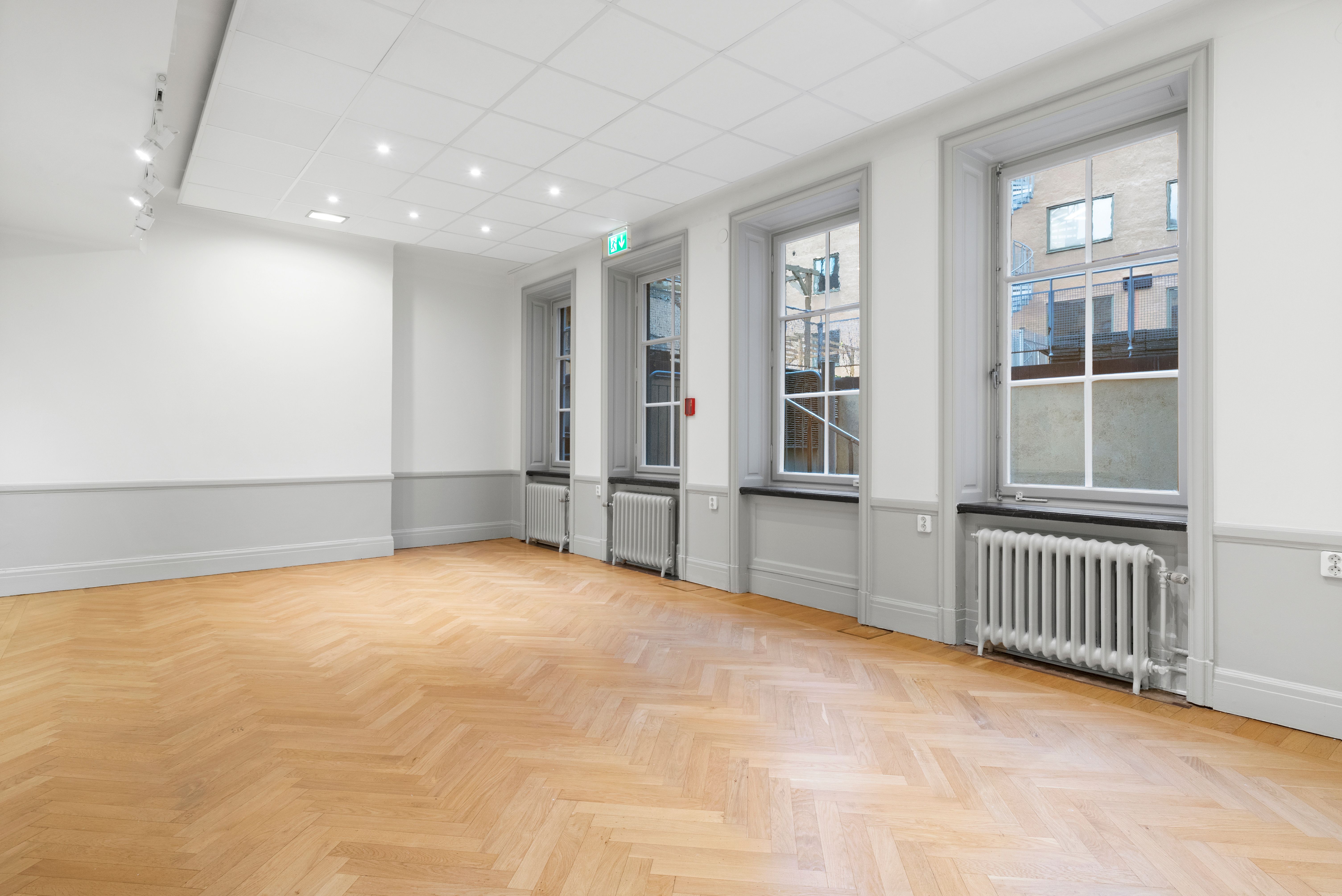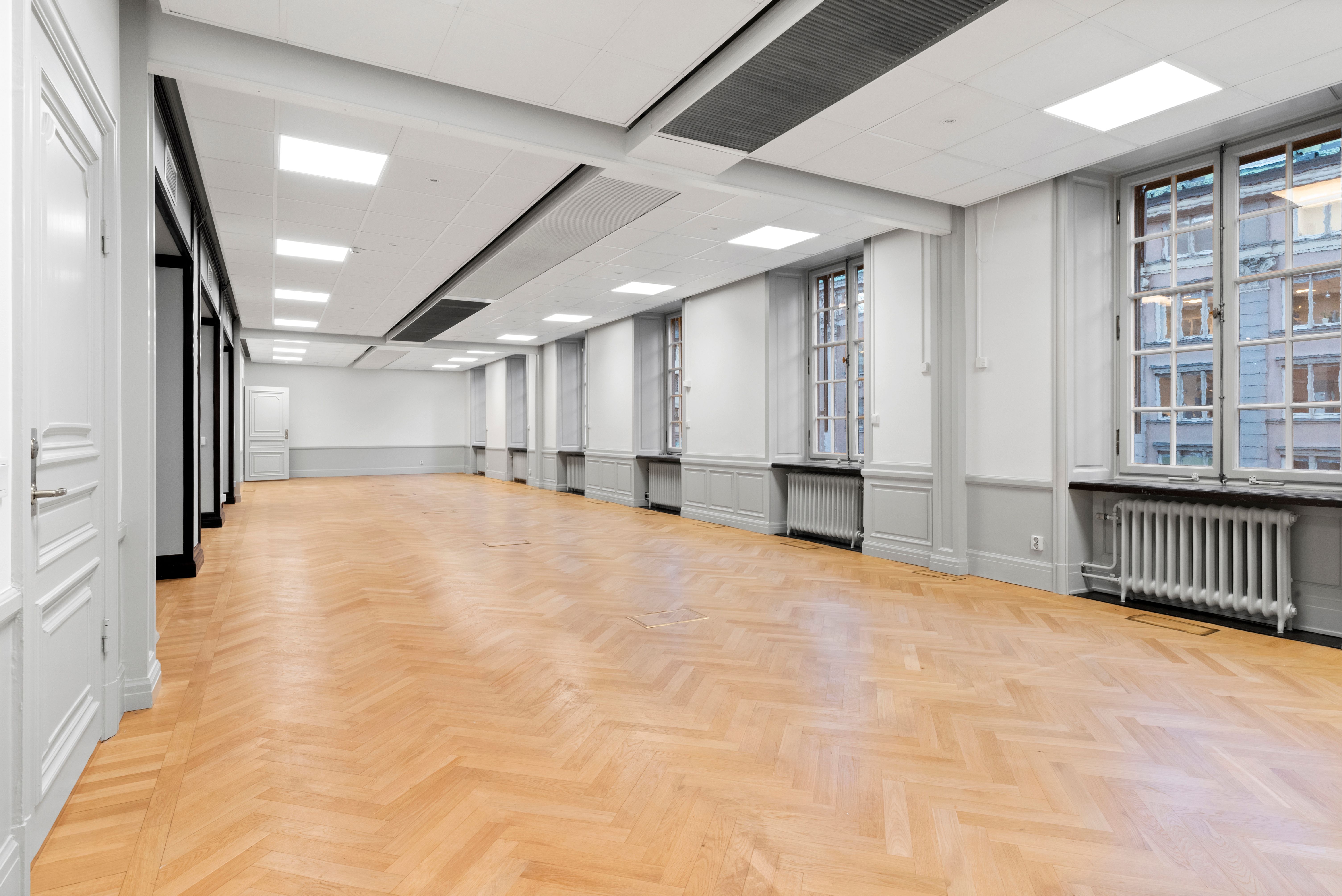 Nu finns det tillfälle att hyra detta unika kontor med bröstpaneler, kakelugnar och balkong med flaggstång. Rymliga ytor och en god variation av kontor/mötesrum.