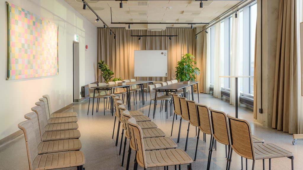 På entréplan välkomnas du av en hotellinspirerad miljö med reception, café och restaurang. Här finns även bokningsbara mötesrum för allt från det lilla teammötet till sammankomster för upp till 50 personer.