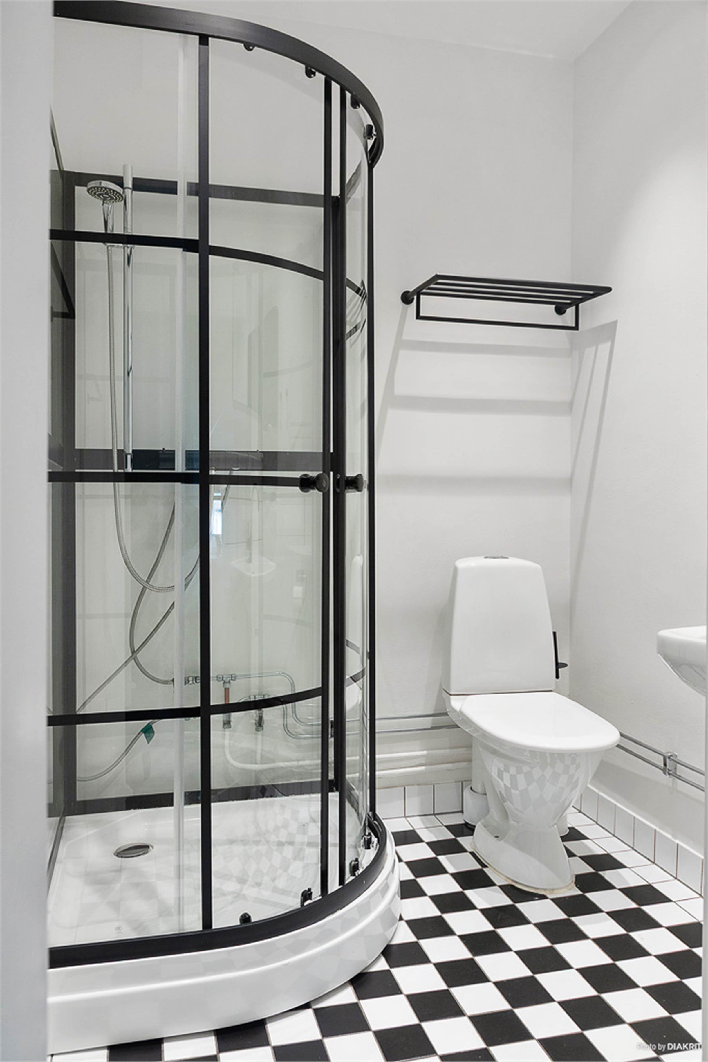 Påkostat kök med god maskinell utrustning och vackert stengolv. Tre wc varav det större har dusch.