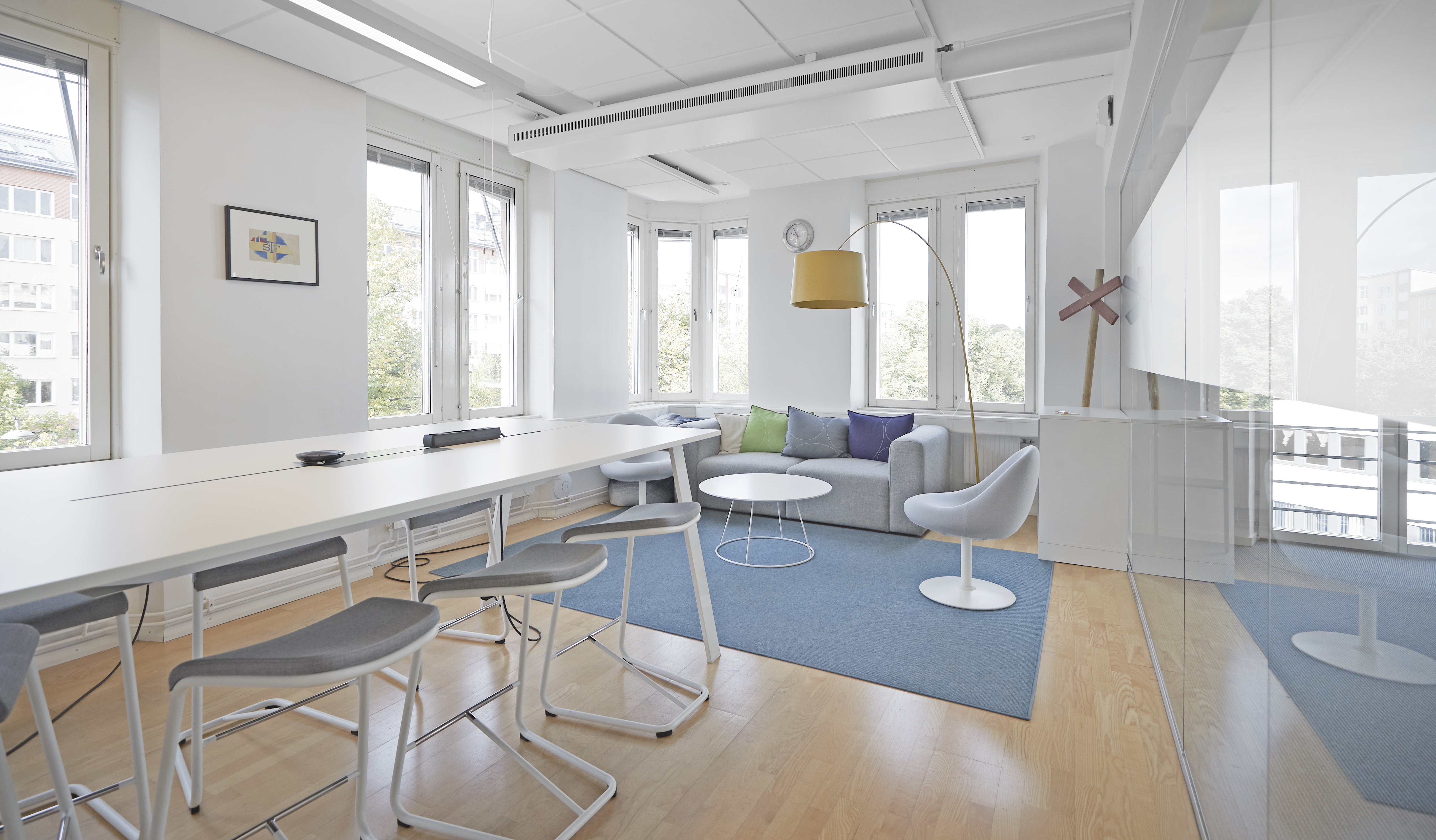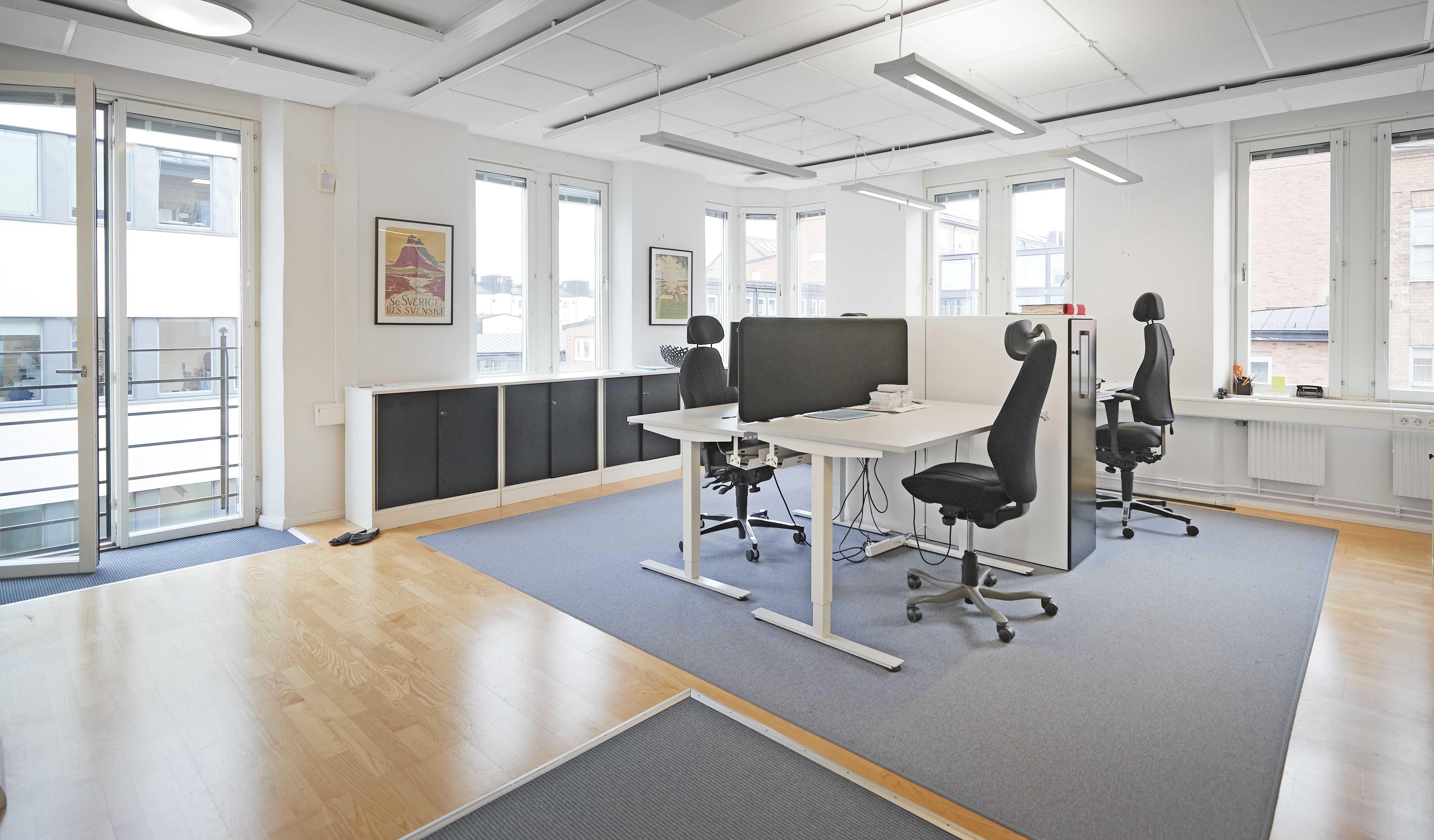 Kontorslokal högt upp i huset med fönster i alla väderstreck
