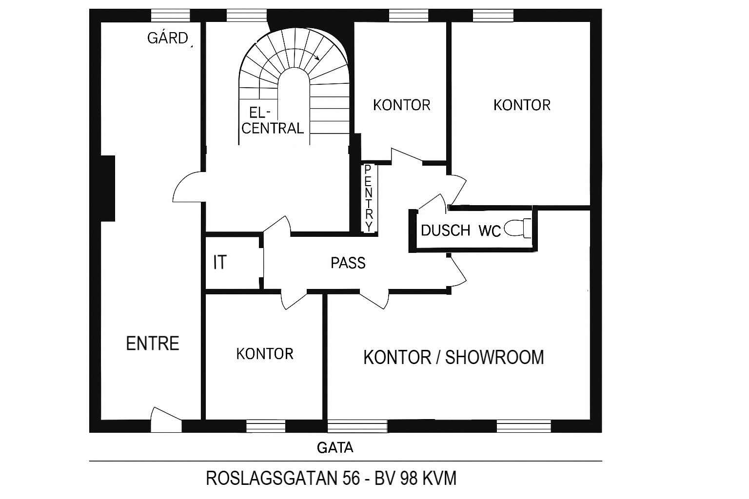 Välkommen till en stilren och funktionell kontorslokal om 98 kvm, belägen i markplan på Roslagsgatan 56. – perfekt för företag som söker en representativ arbetsplats i centrala Vasastan.