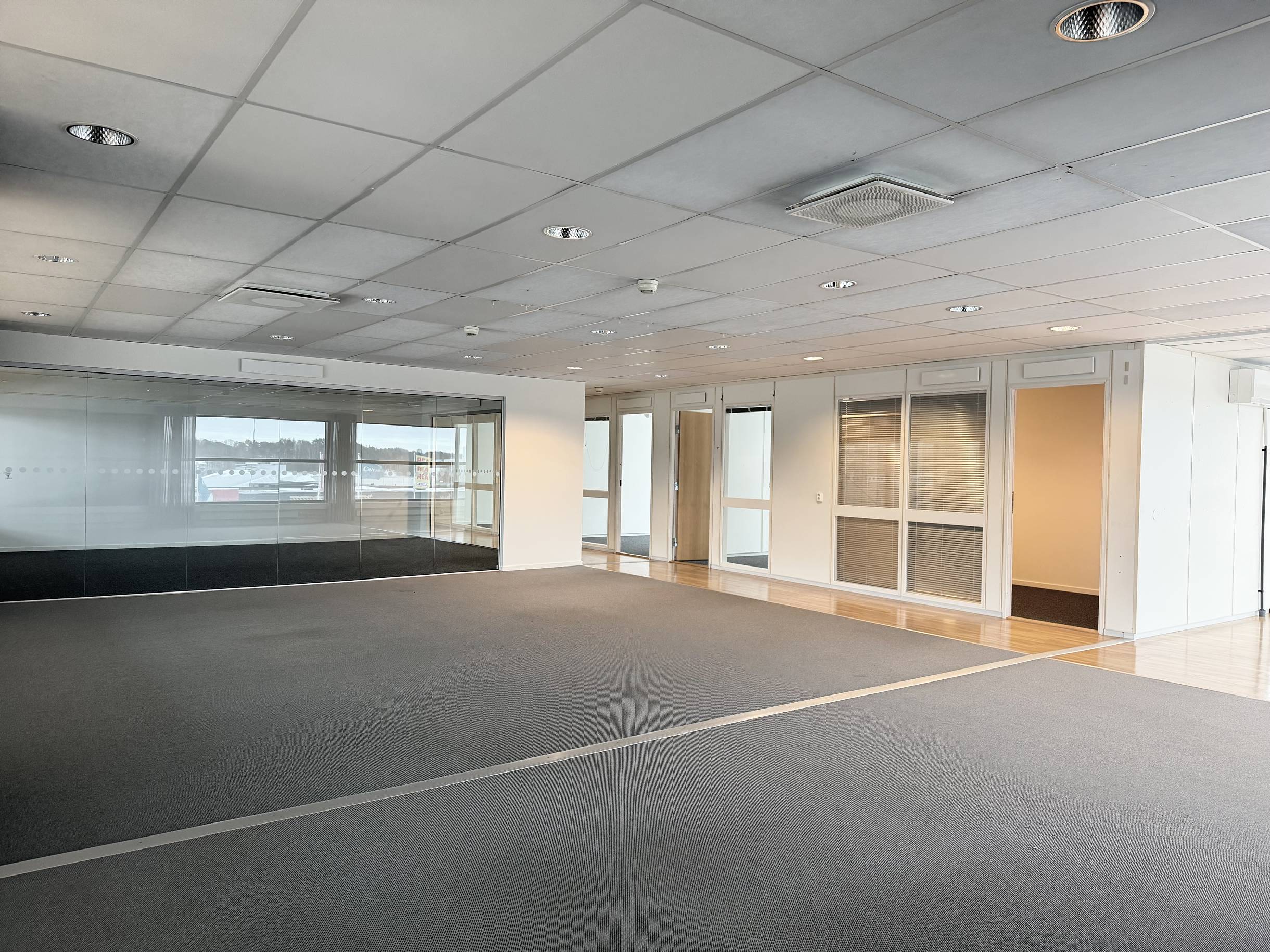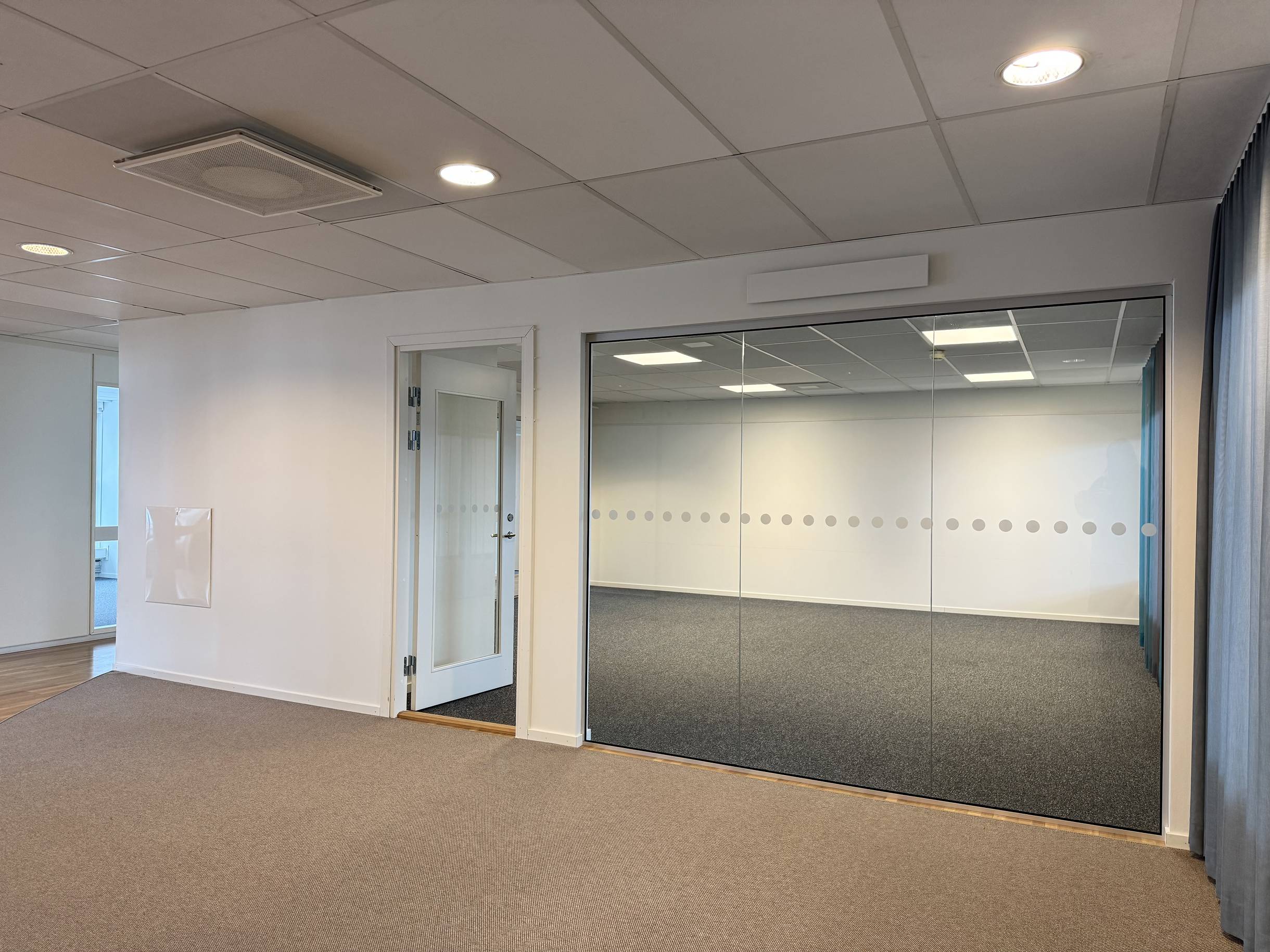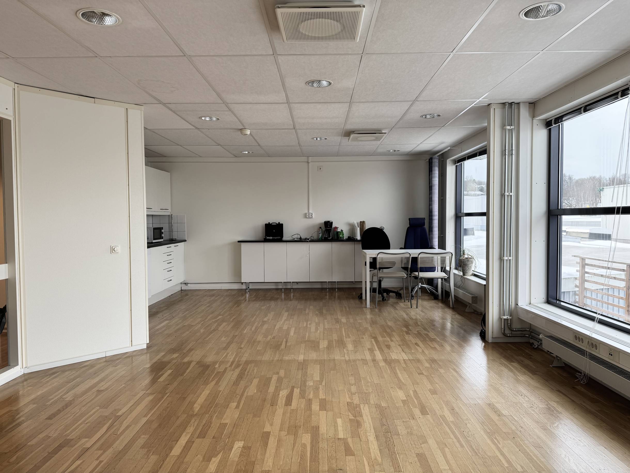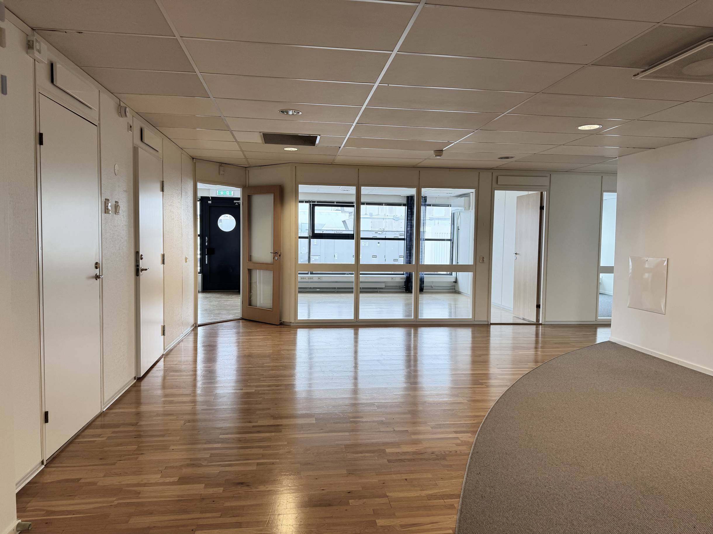 Här erbjuds en funktionell planlösning med en kombination av öppen arbetsyta, flera separata kontorsrum samt två stora mötesrum, vilket skapar goda förutsättningar för både samarbete och enskilt arbete. De generösa fönsterpartierna ger ett fint ljusinsläpp och bidrar till en trivsam arbetsmiljö.