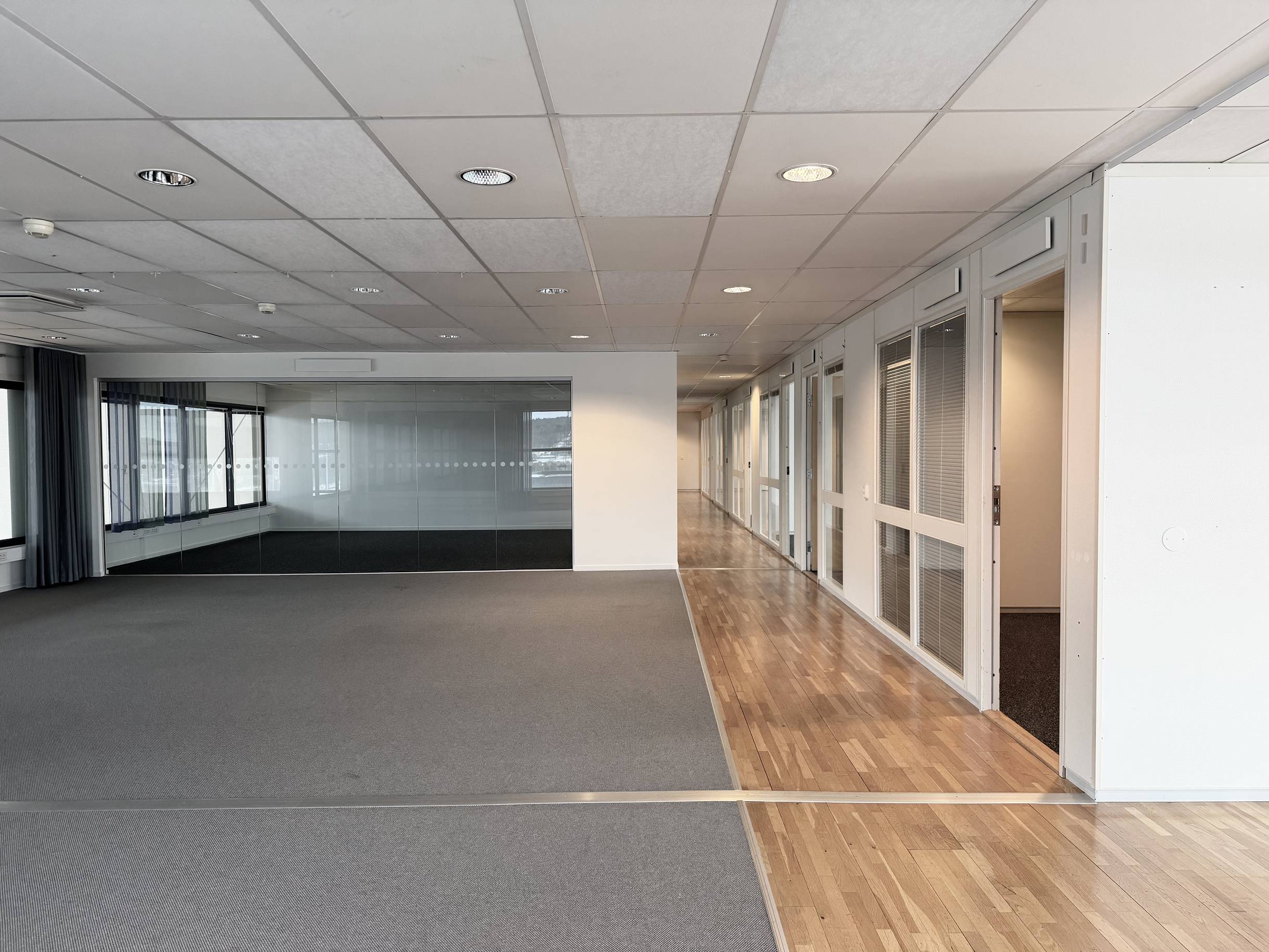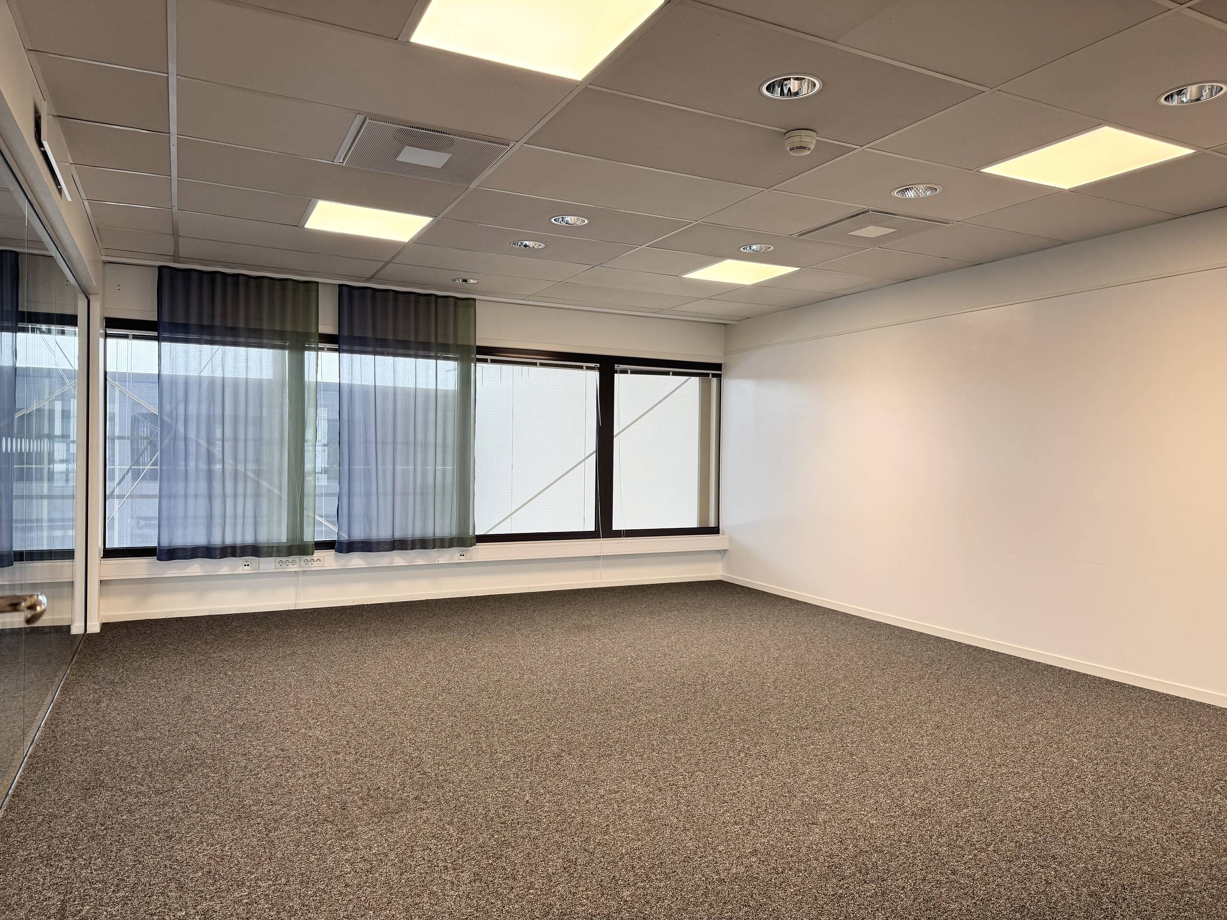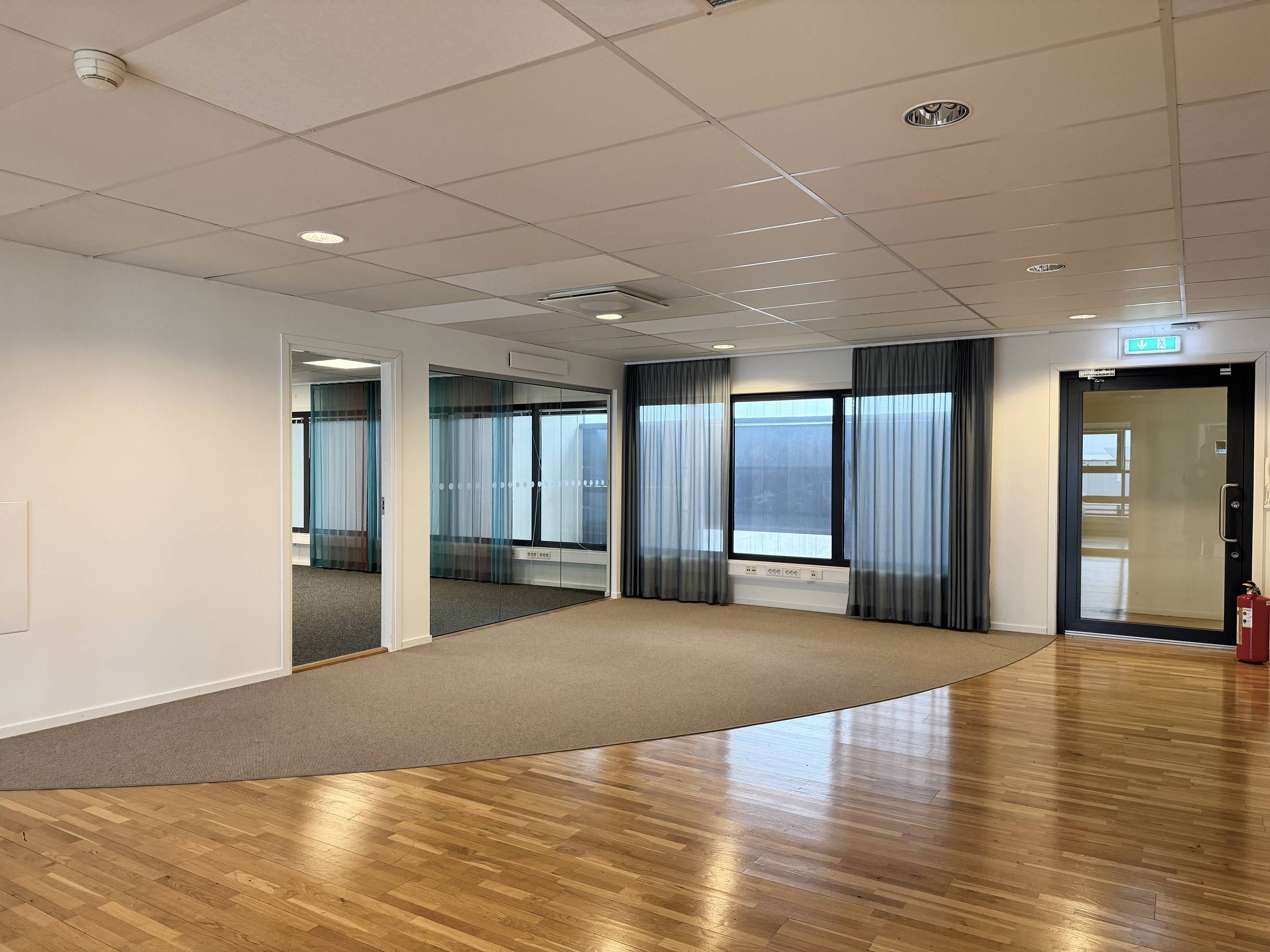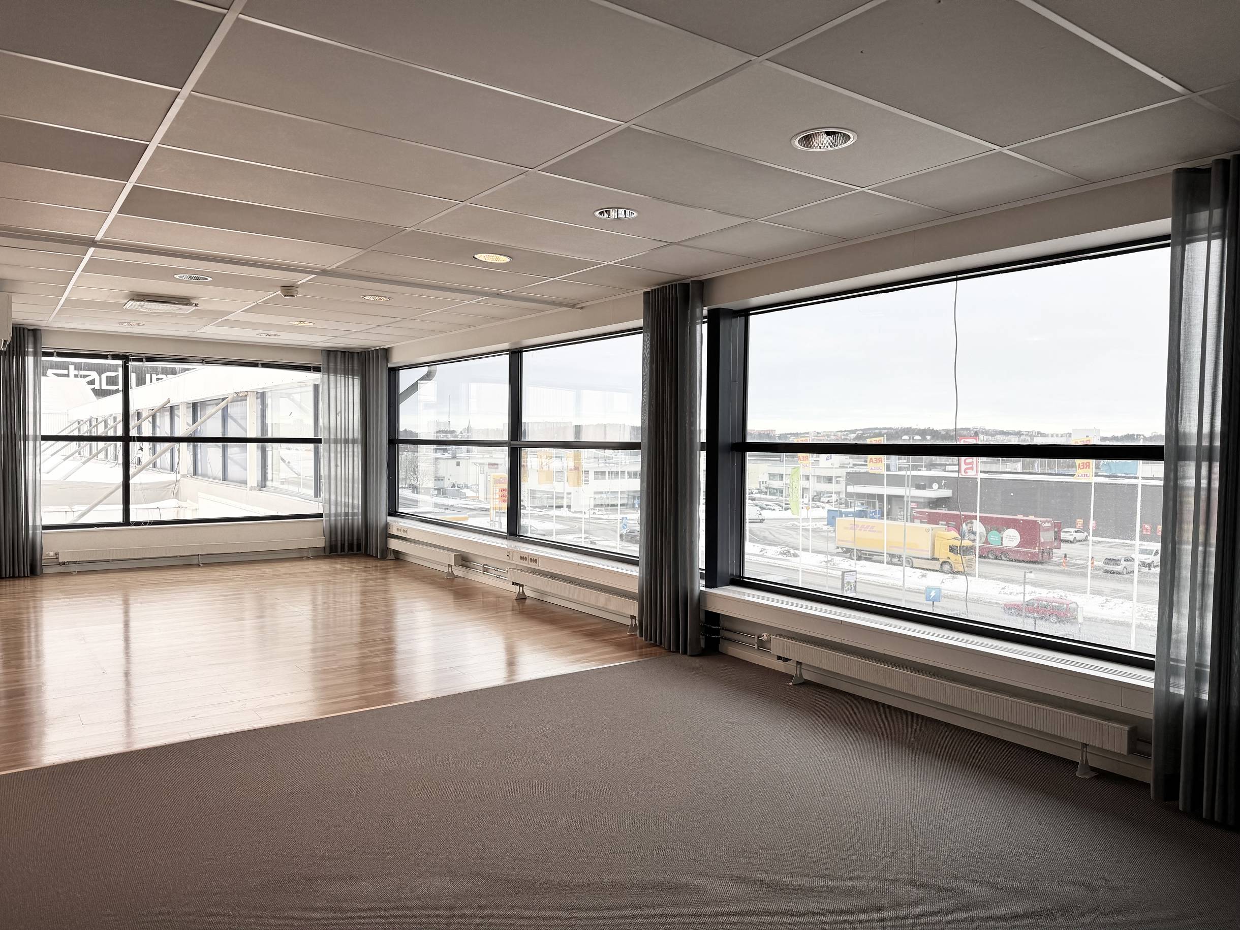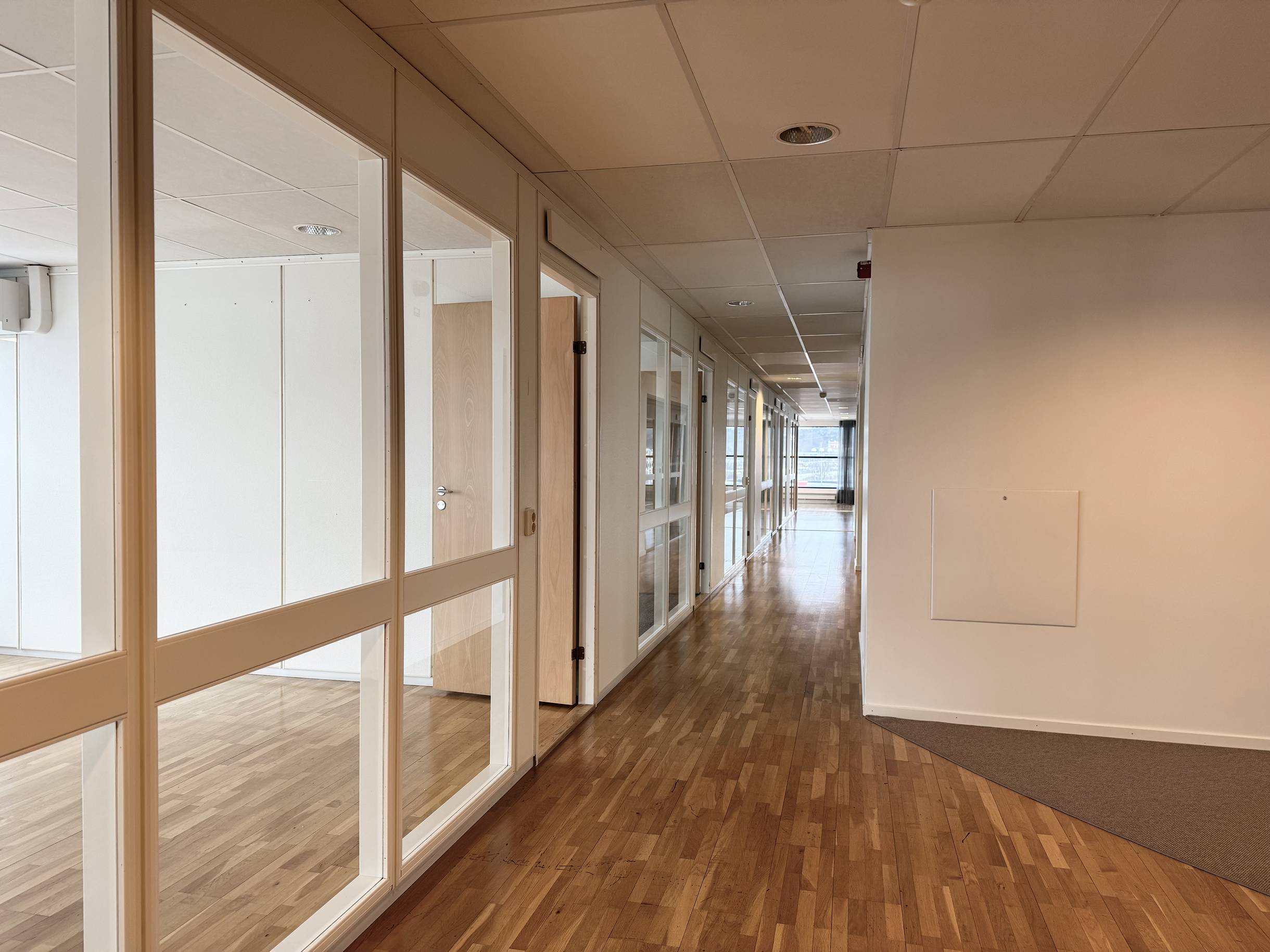 Här erbjuds en funktionell planlösning med en kombination av öppen arbetsyta, flera separata kontorsrum samt två stora mötesrum, vilket skapar goda förutsättningar för både samarbete och enskilt arbete. De generösa fönsterpartierna ger ett fint ljusinsläpp och bidrar till en trivsam arbetsmiljö.