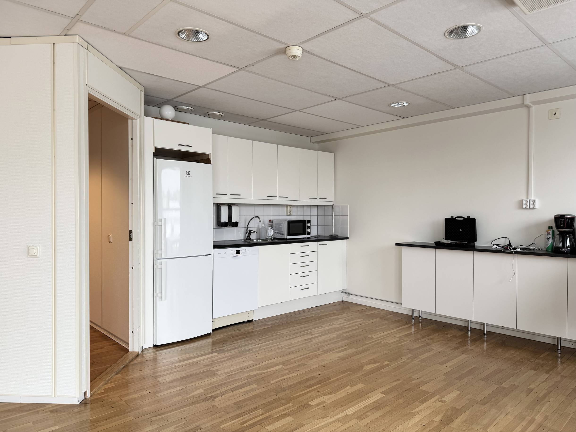 Vidare finns ett kök/pentry med plats för paus och gemensamma måltider samt två WC.