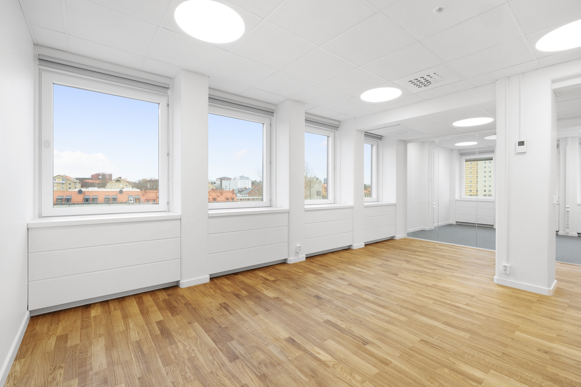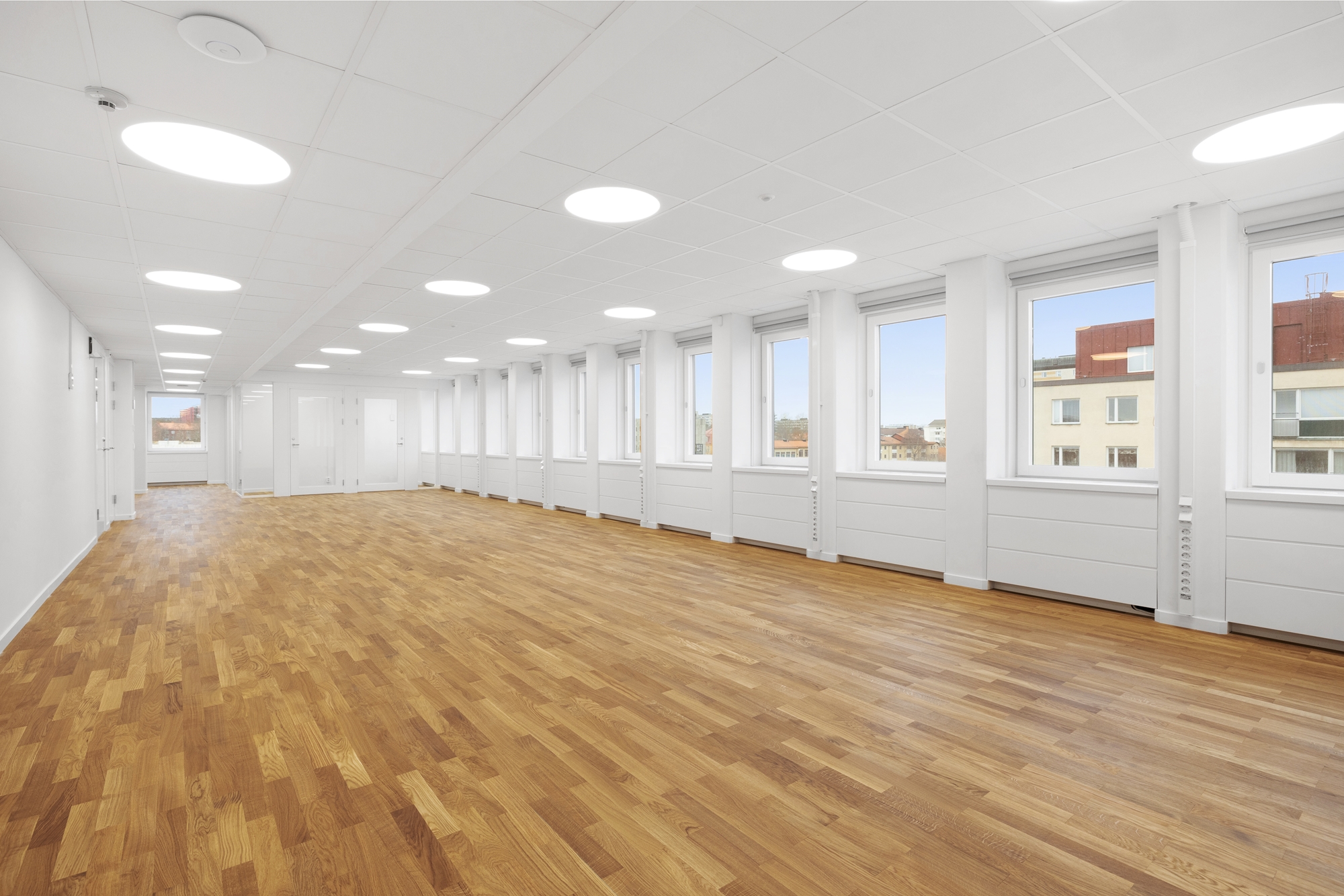 -Många fönster och ett läge högt upp i huset vilket bidrar till ett mycket trivsamt ljusinsläpp i lokalen