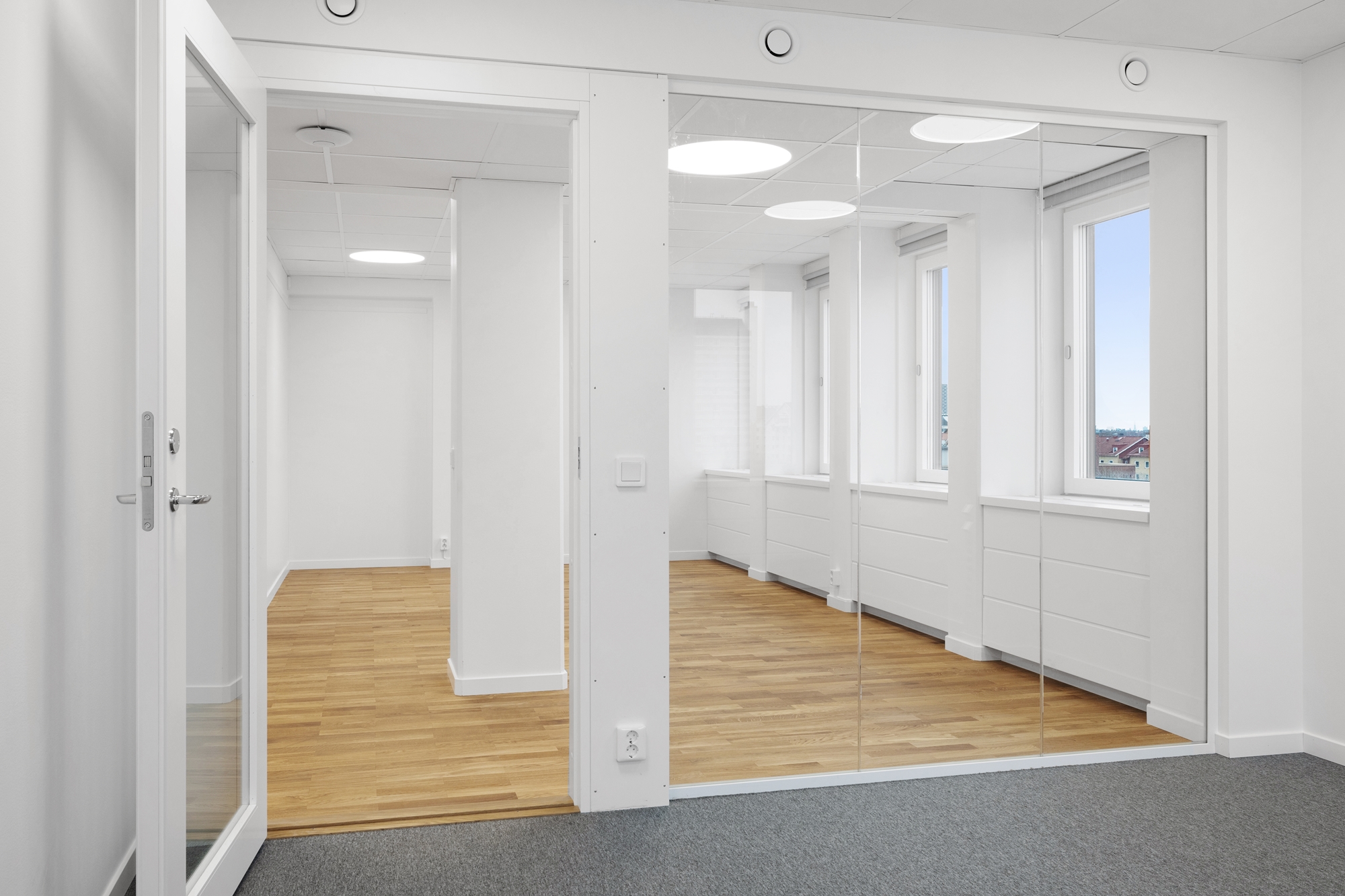 -En öppen kontorsyta i kombination med ett separat kontors/mötesrum