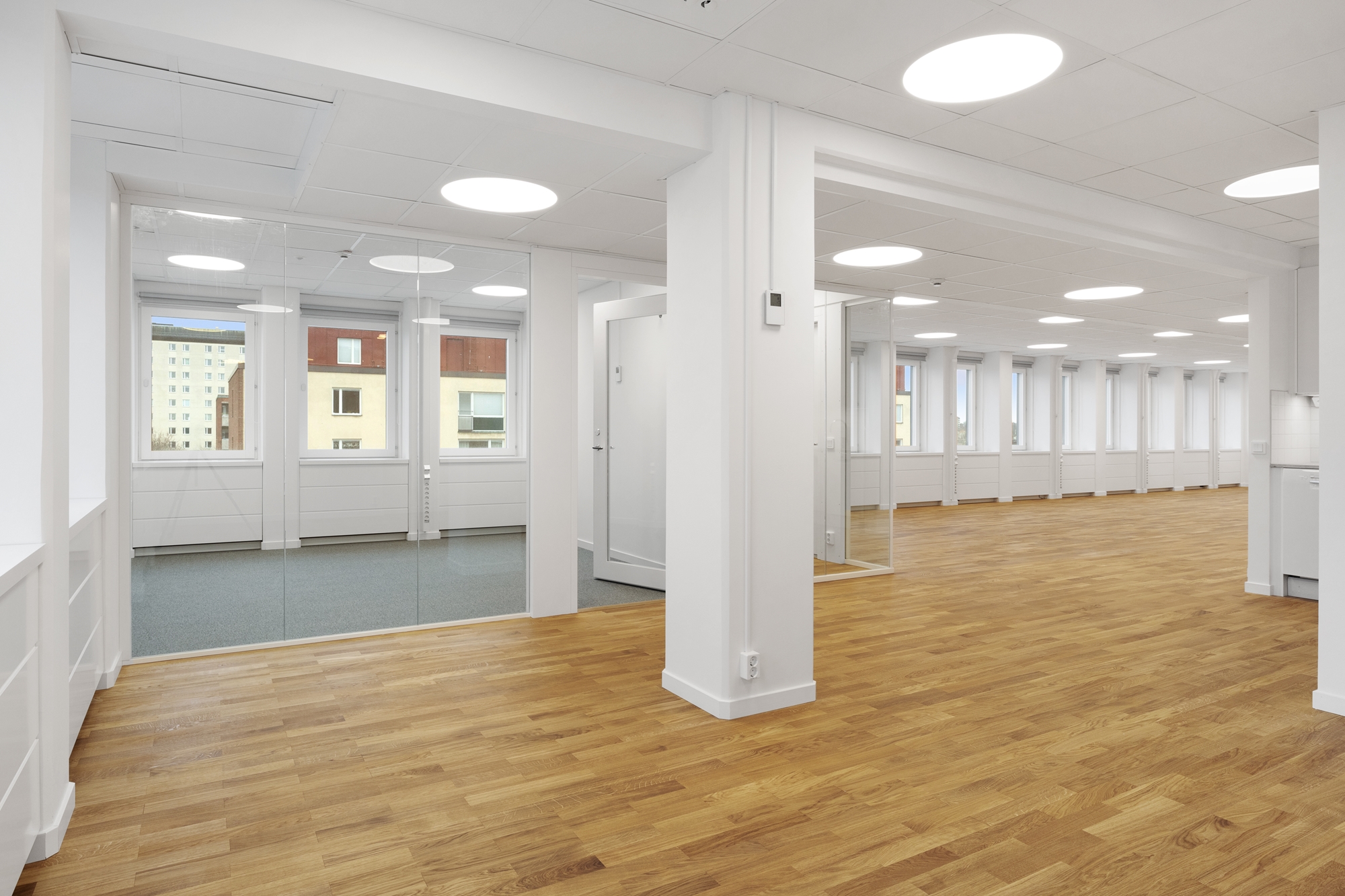 Här finner ni en mycket ljus och trevlig lokal lämplig för företag/organisationer med behov av en lokal med en mix av dels en öppen kontorsyta i kombination med några kontors och mötesrum i varierande storlekar.