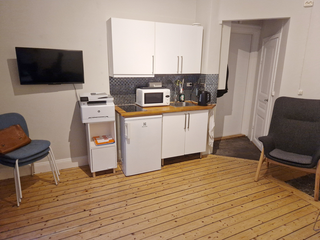 Lokalen lämpar sig utmärkt för en eller två kontorsarbetsplatser och erbjuder en lugn och trivsam arbetsmiljö. Lokalen har ett mindre Trinettkök som pentry samt WC med dusch.