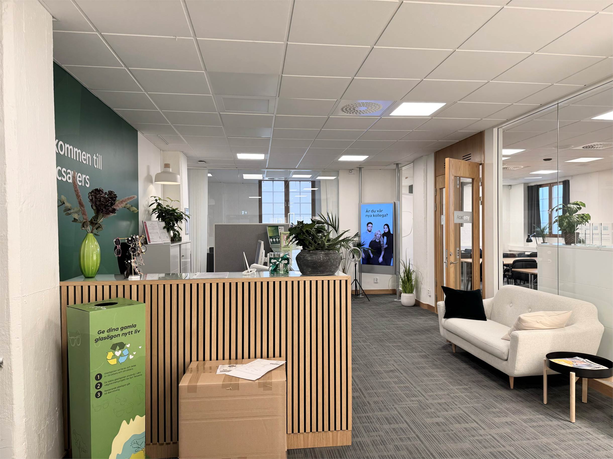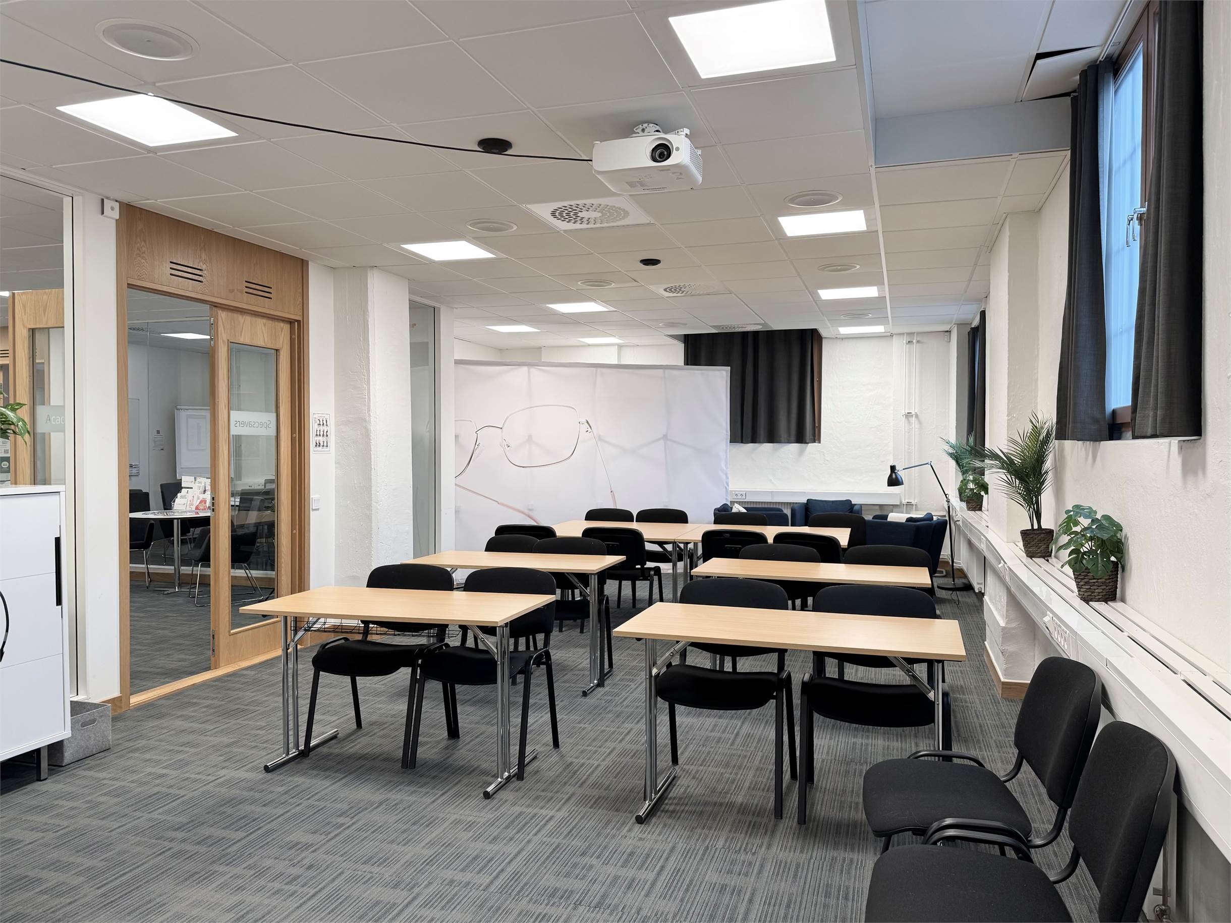 Trevligt kontor med öppet landskap, storrum, mötesrum, teamsrum och separata kontor. Lokalen är på 750 kvm men går att utöka med ytterligare 190 kvm om så önskas. Se planritningen.