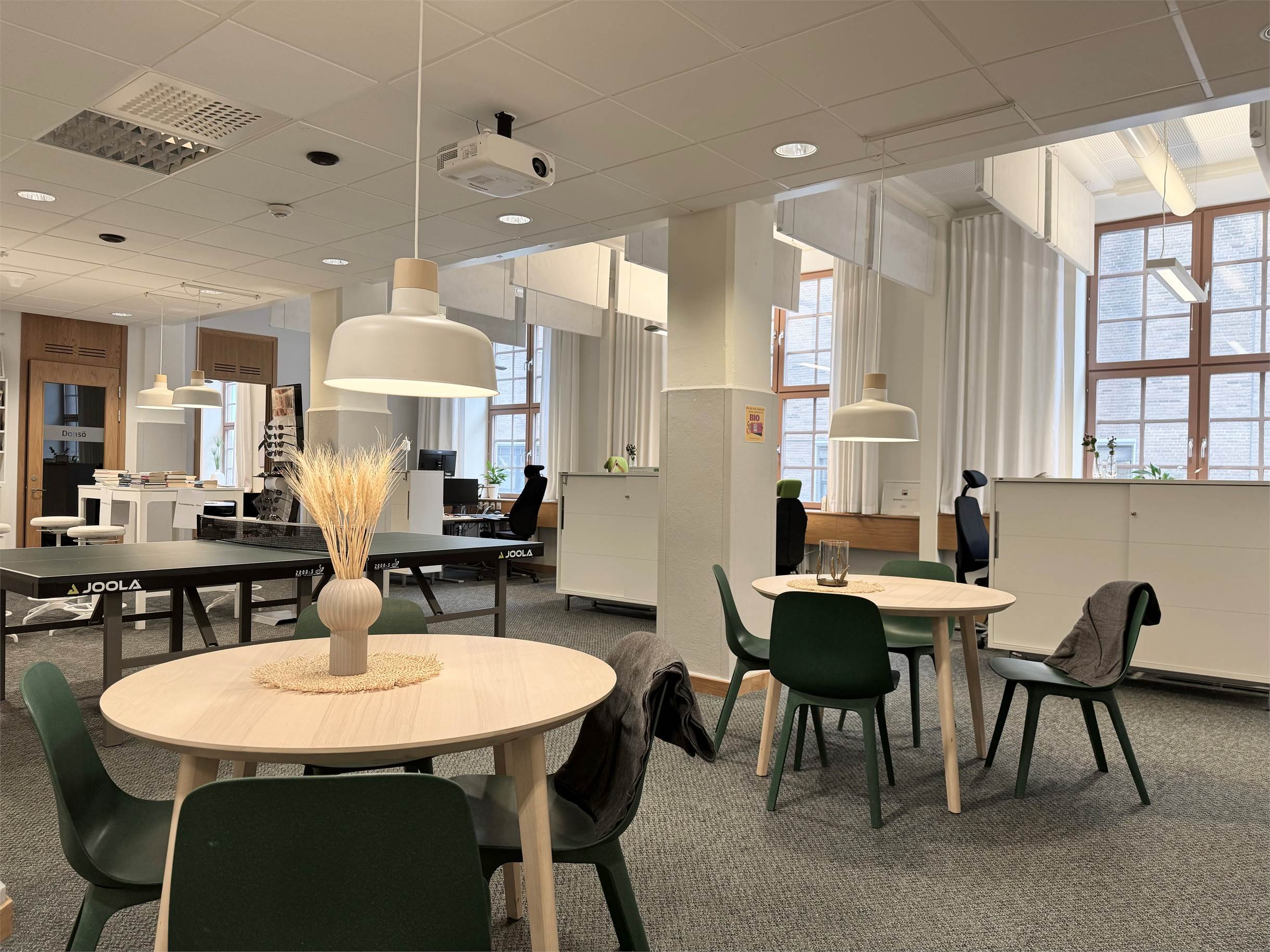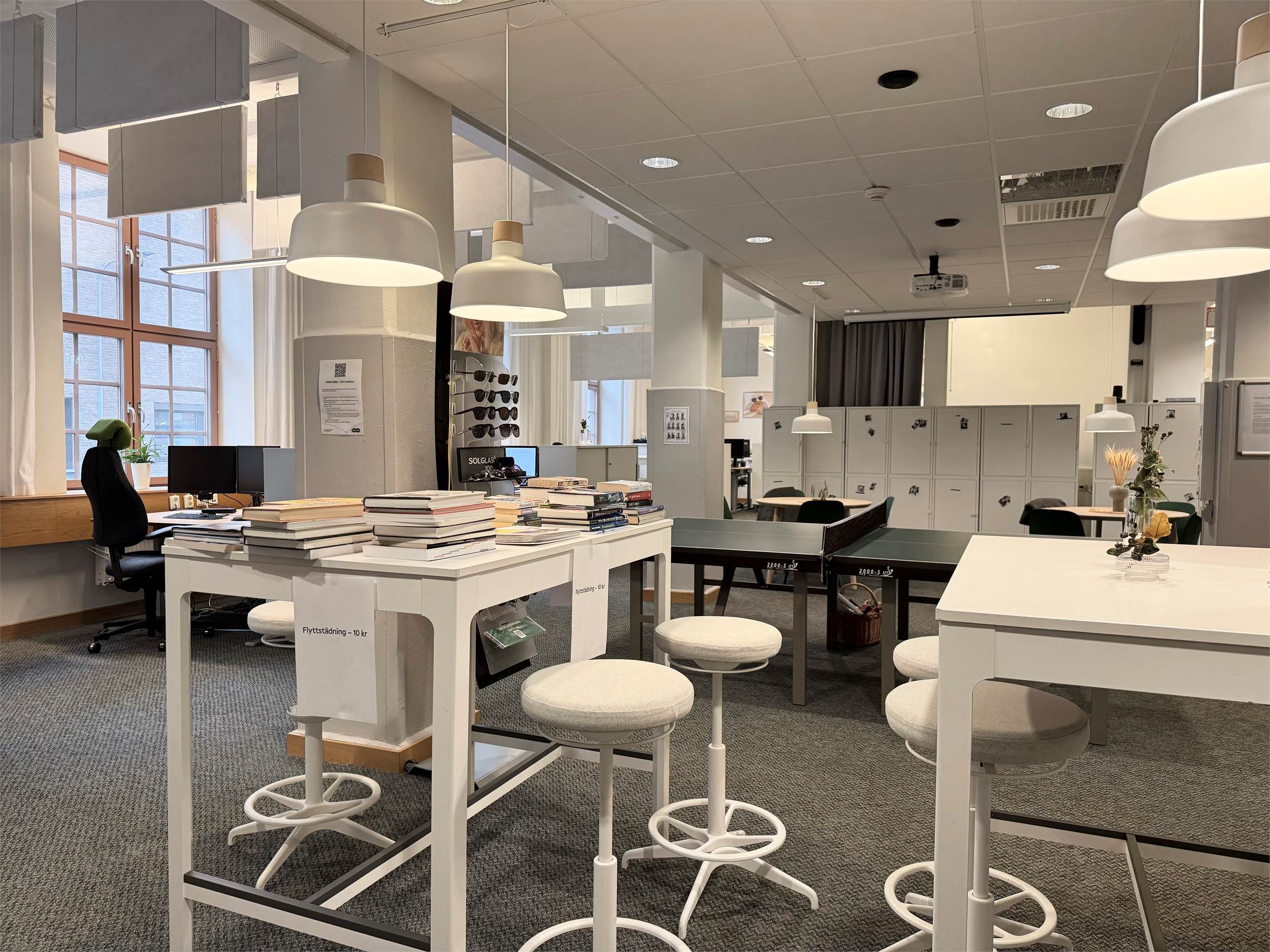 Den centrala arbetsytan är öppen och luftig med generös takhöjd och stora fönster som skapar ett härligt ljusflöde. Lokalen rymmer fyra storrum, flera mötesrum i olika storlekar, HWC och WC, teamsrum, vilorum samt ett stort pentry med matplatser. Centralt finns även en öppen lounge/pausyta som bjuder in till samverkan och kreativa möten. Lokalen har dessutom lasthiss, vilket underlättar logistik och transporter.