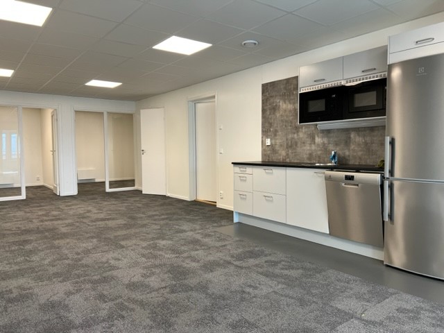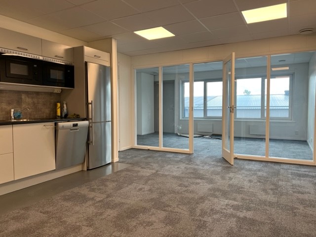 2 kontor, 1 konferensrum och en gemensamhets yta med pentry, kyl/frys, Micro samt toalett med dusch.