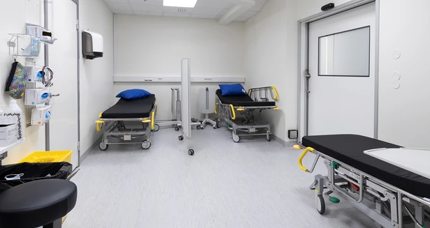 Bilderna visar hur det ser ut i vårdlokalen samt exempel på hur det skulle kunna bli på kontoret efter en lokalanpassning.