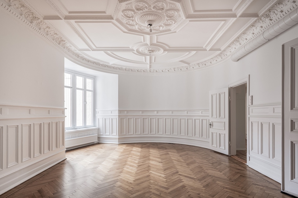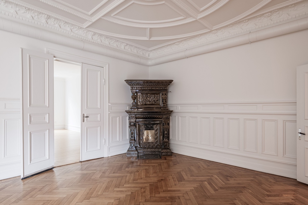 Högt i tak, stora fönster samt balkong med utsikt över grönska i vasaparken. Lokalen har förutom sin takhöjd och stuckaturer även ett flertal pampiga öppna spisar.