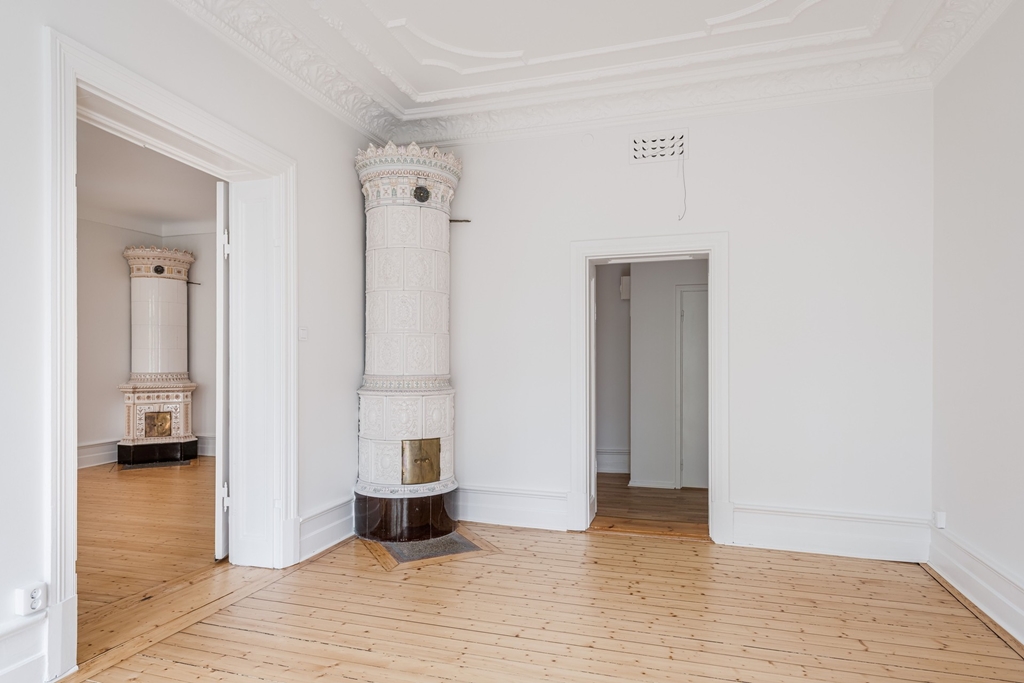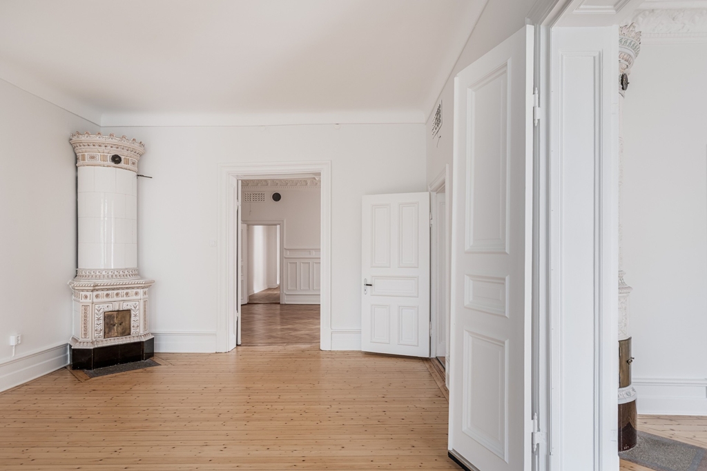 Denna vackra fastighet erbjuder en imponerande entré som sätter tonen för det exklusiva intrycket. Lokalen är belägen på våningsplan 4 och ger en oslagbar känsla av rymd med sina generösa takhöjder och de unika stuckaturerna som pryder tak och väggar. Ett flertal öppna spisar ger inte bara värme utan även en distinkt charm och karaktär som ger lokalen en extra dimension.