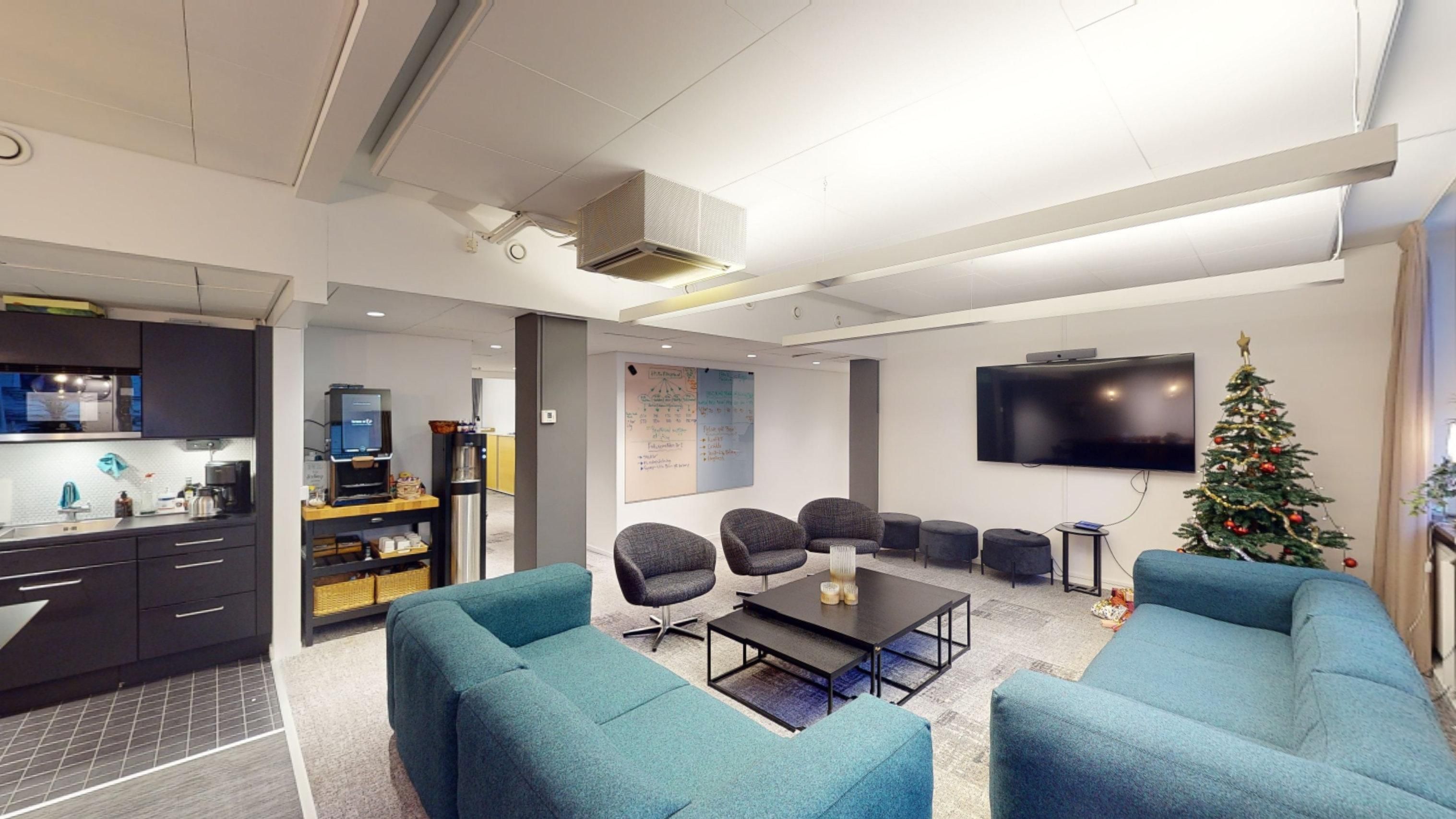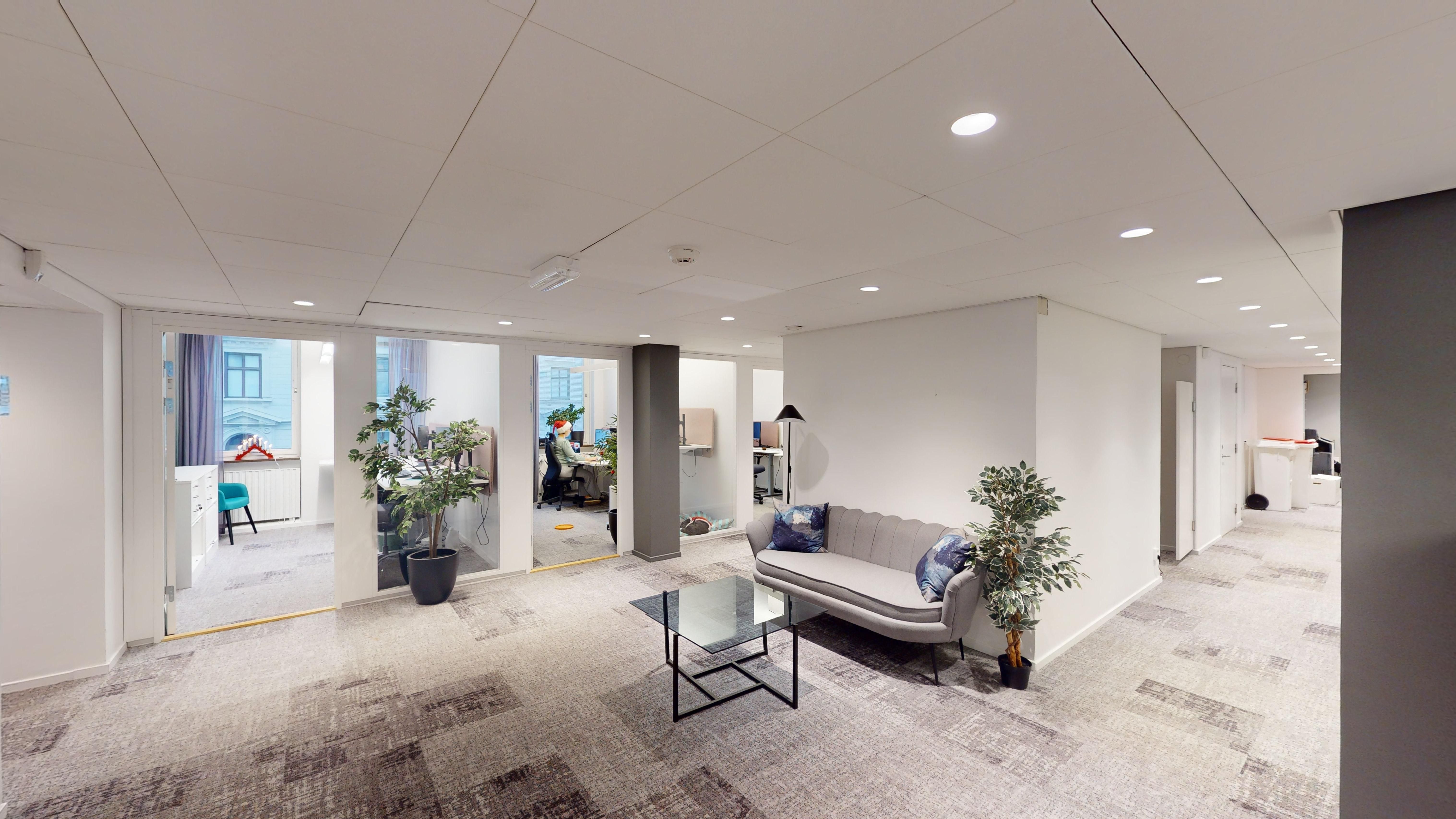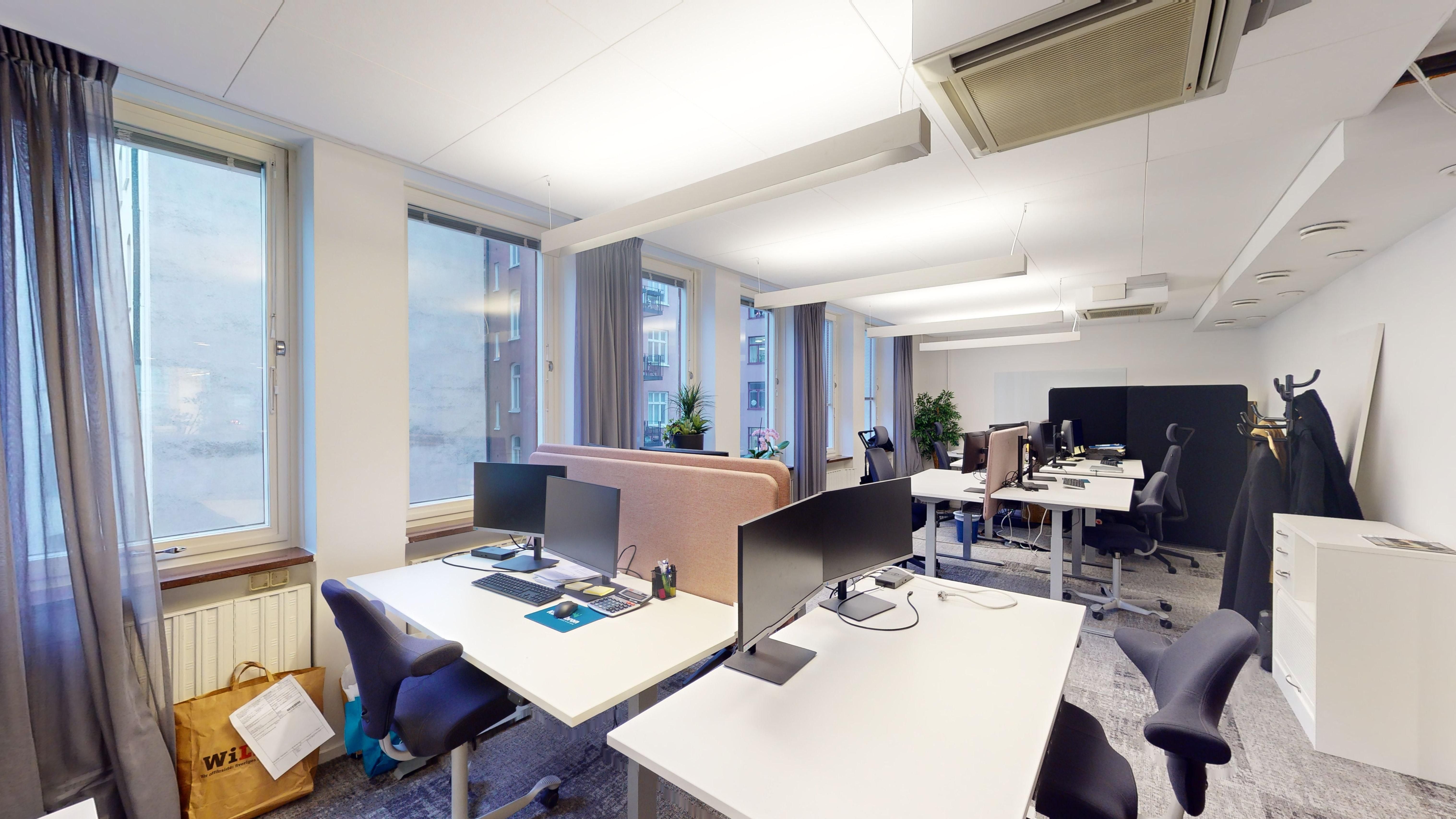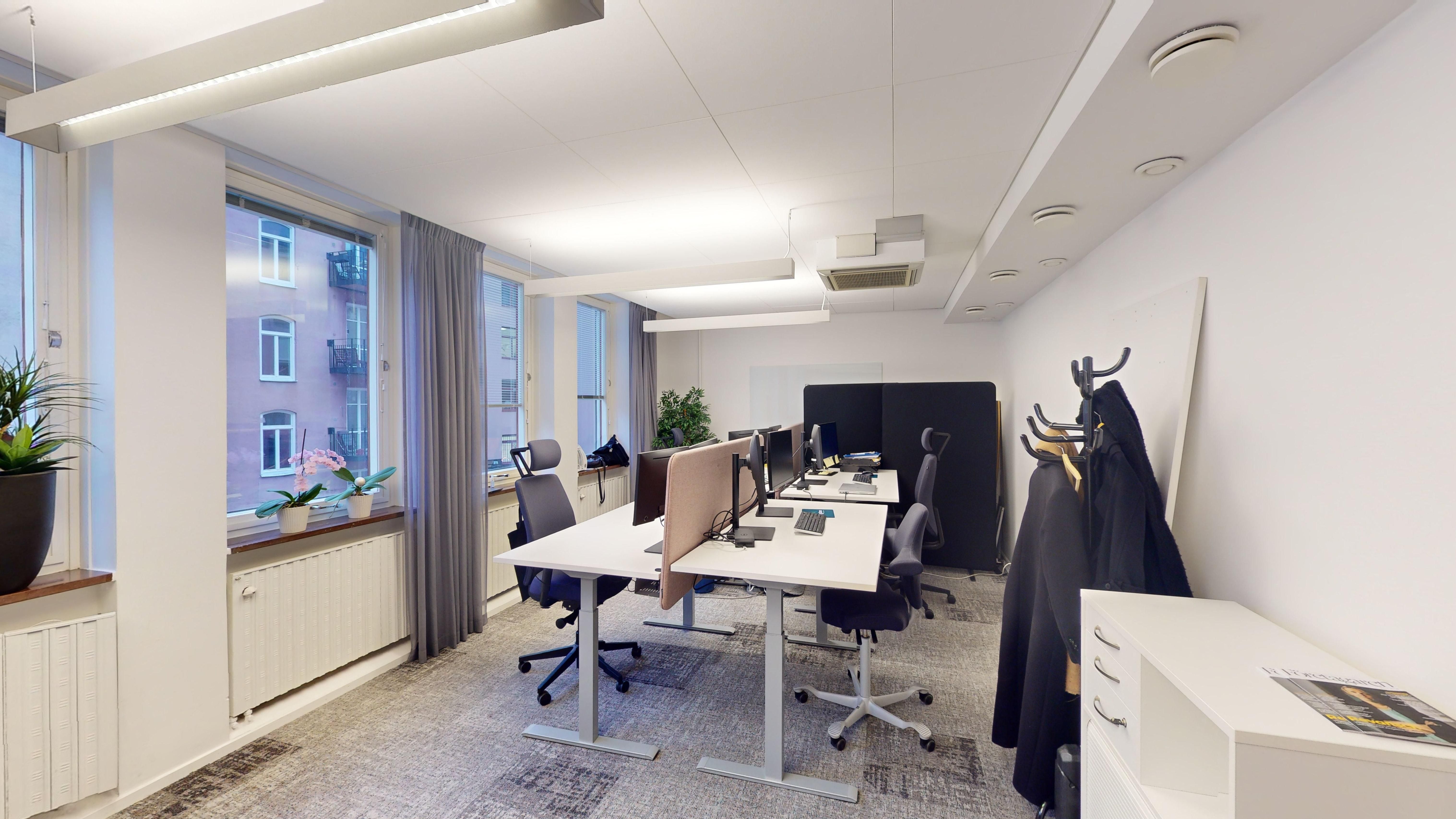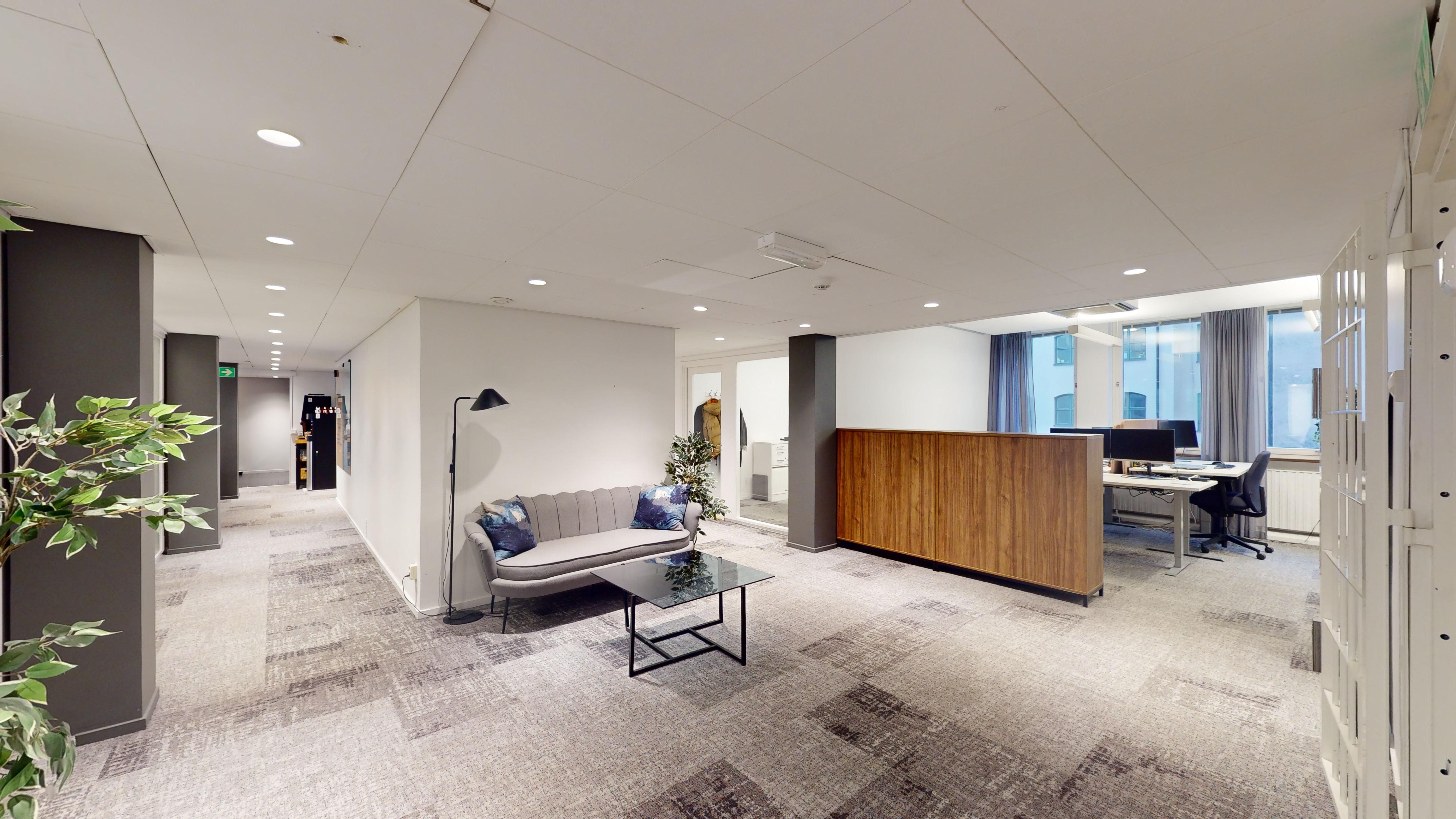 - Flexibel planlösning: 255 kvm som kombinerar öppna kontorslandskap, mindre kontorsrum och mötesrum – perfekt för olika arbetsflöden.