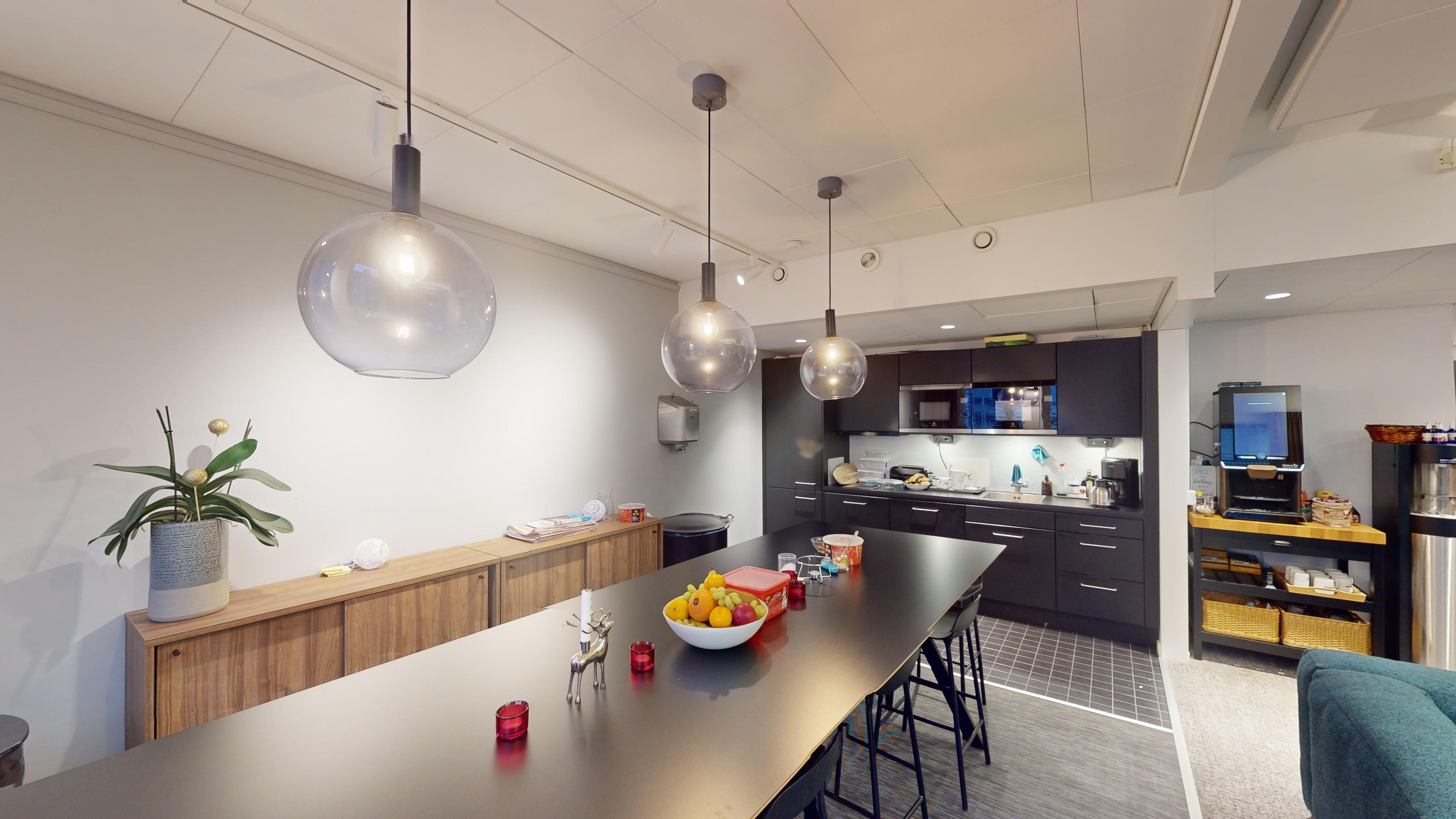 - Sociala ytor: Ett stort pentry med matplats som ger utrymme för gemenskap och pausaktiviteter.