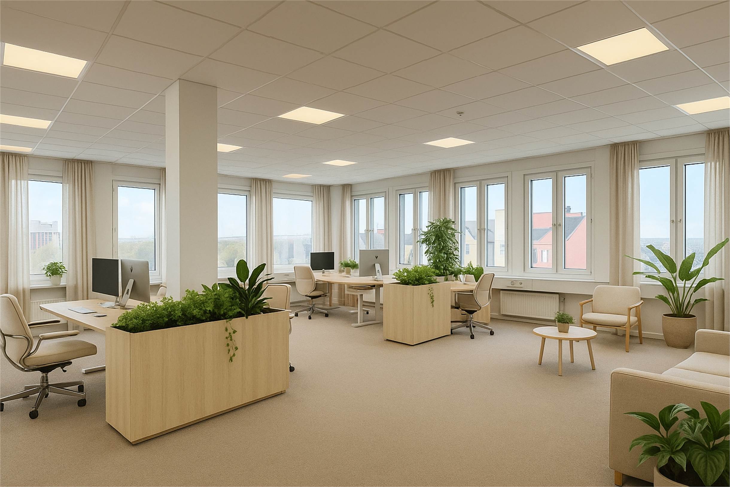 Lokalen erbjuder öppen planlösning med både storrum, konferensrum och separata kontor. Här finns även 2 WC och ett öppet socialt kök i den öppna delen av lokalen. Med sina öppna ytor och möjlighet till separata arbetsrum eller mötesrum, passar kontoret såväl mindre team som ett lite större företag som söker en central bas.