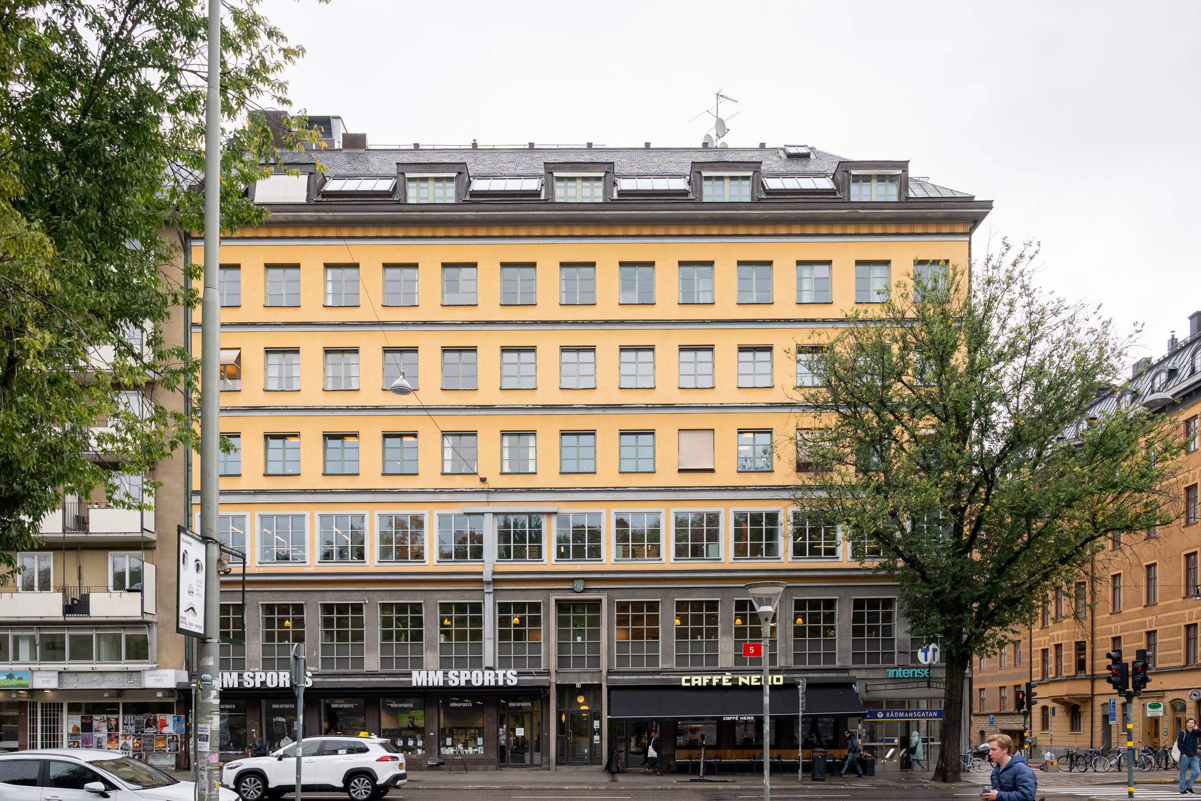 Läget är perfekt för företag som värdesätter centralt läge, en inspirerande arbetsmiljö och enkel pendling för både medarbetare och kunder. Rådmansgatans T-baneuppgång ligger i huset och utanför porten går flertalet bussar. På 5 minuters promenad når du Odenplan.  I bottenvåningen på fastigheten ligger Caffè Nero, en perfekt lunch-eller mötesplats. I fastigheten finns även ett gym.