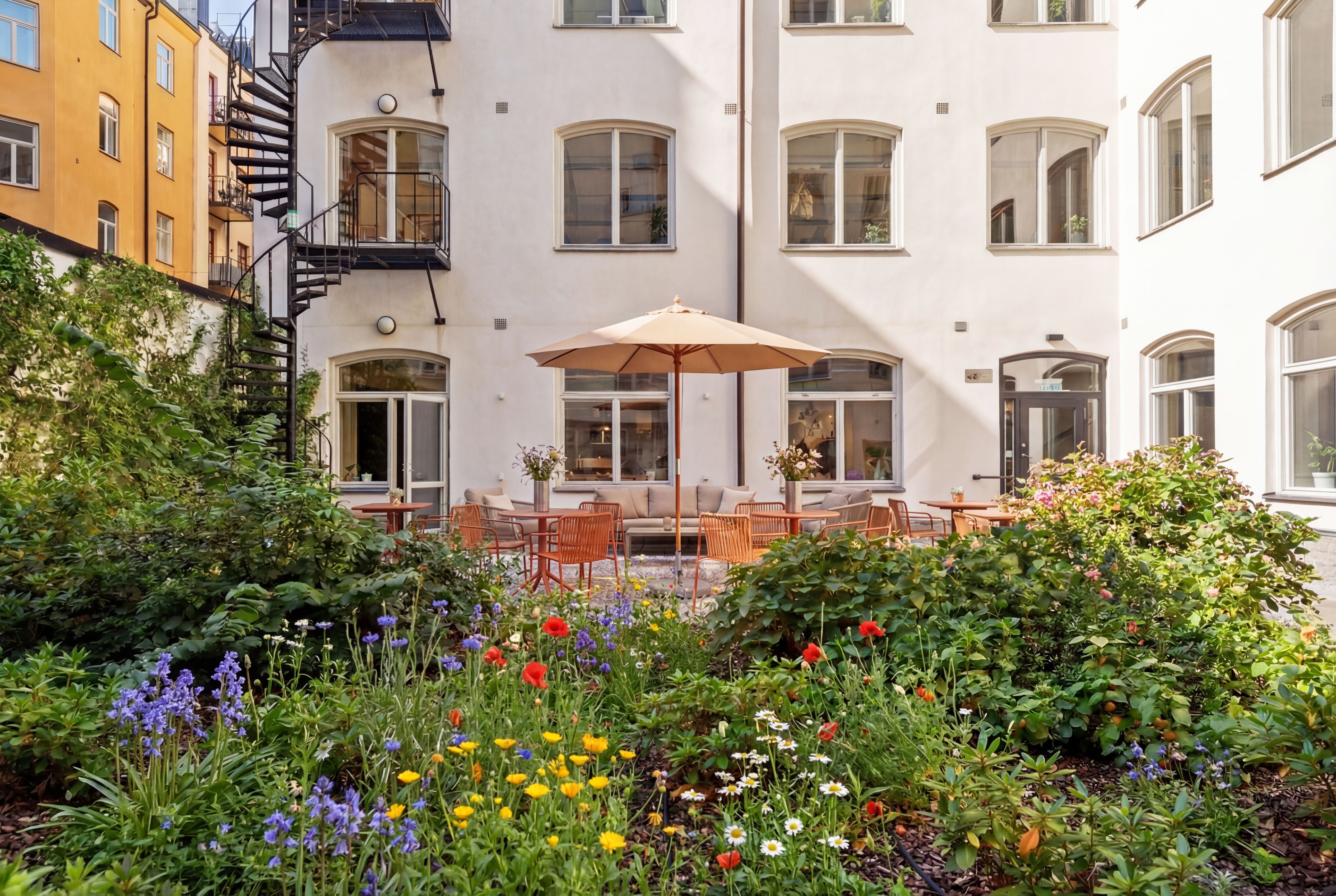 En privat oas med stor terrass; Huset kopplas samman av en privat innergård som ska utvecklas till en grönskande oas bara för er – en perfekt plats för informella möten eller en välförtjänt paus i solen. Innergården erbjuder även smidig cykelparkering för de medarbetare som pendlar hållbart inklusive laddning för elcyklar.