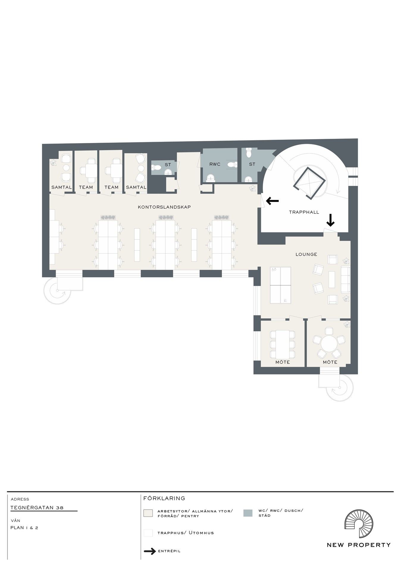 Eget och unikt gårdshus på Tegnérgatan 38, invid Tegnérlunden. Detta är en plats för företaget som söker en lokal med en egen identitet, där både medarbetare och kunder vill vara - Här kombineras karaktär, modern funktionalitet och en hållbarhetsprofil i världsklass.