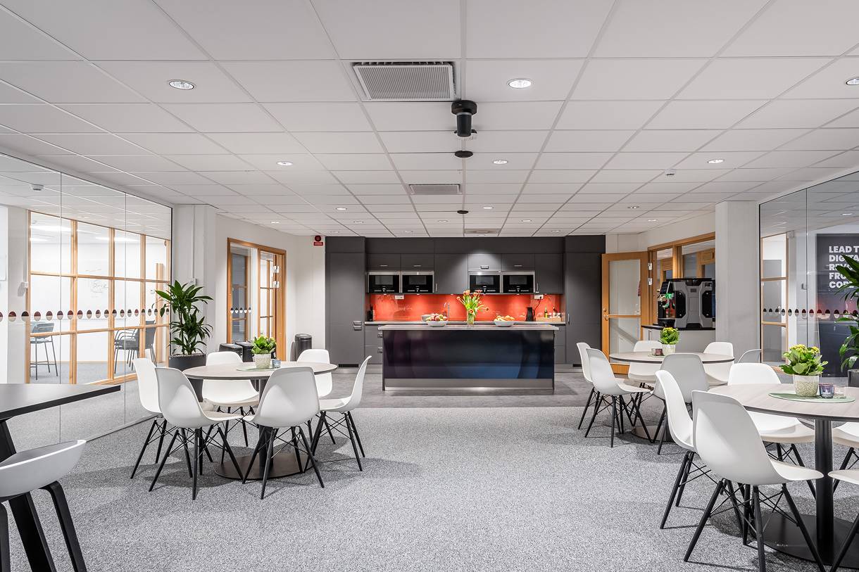Lokalen erbjuder en flexibel och genomtänkt planlösning med en kombination av större öppna ytor och mindre rum. Detta skapar goda förutsättningar att anpassa arbetsmiljön efter verksamhetens behov, oavsett om ni arbetar aktivitetsbaserat, i team eller i mer traditionella strukturer.
