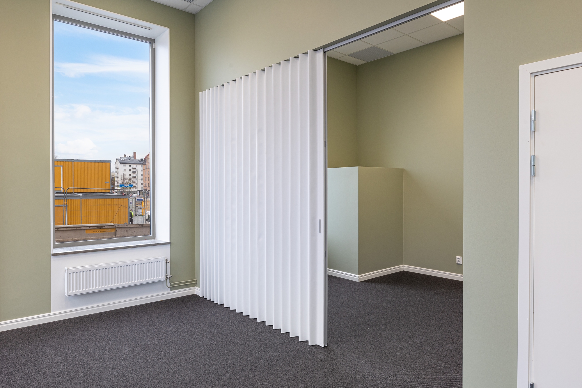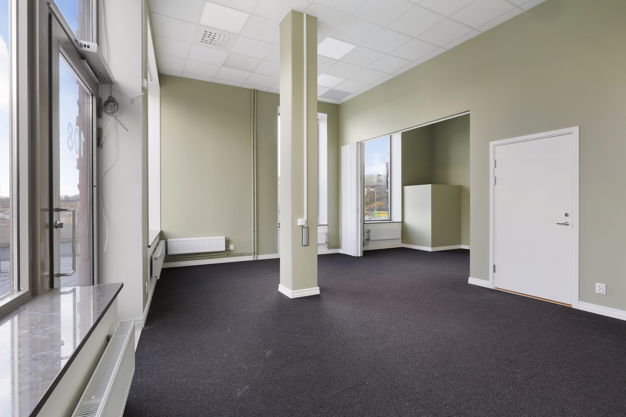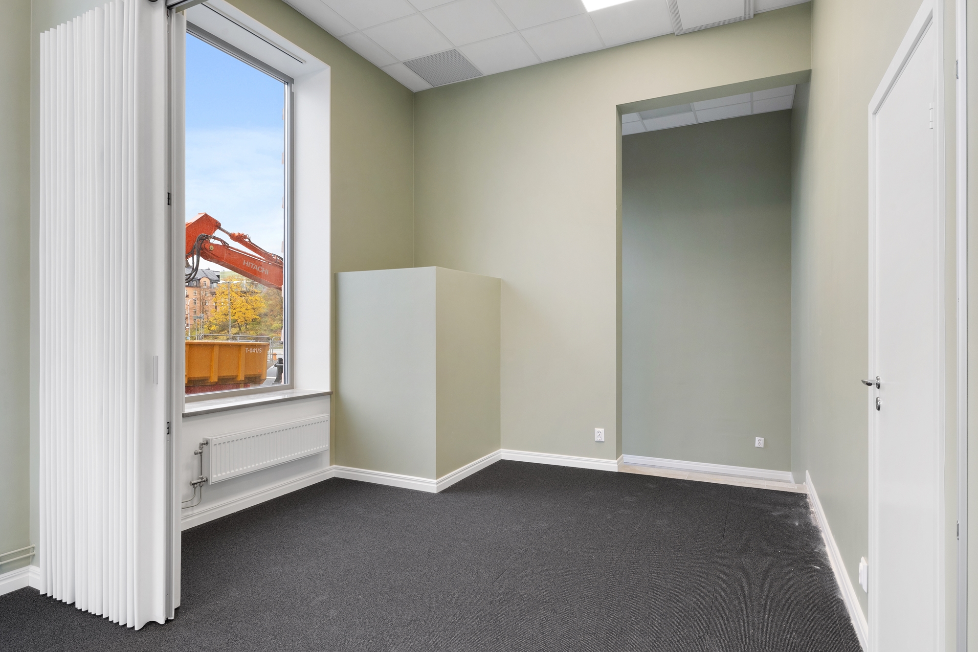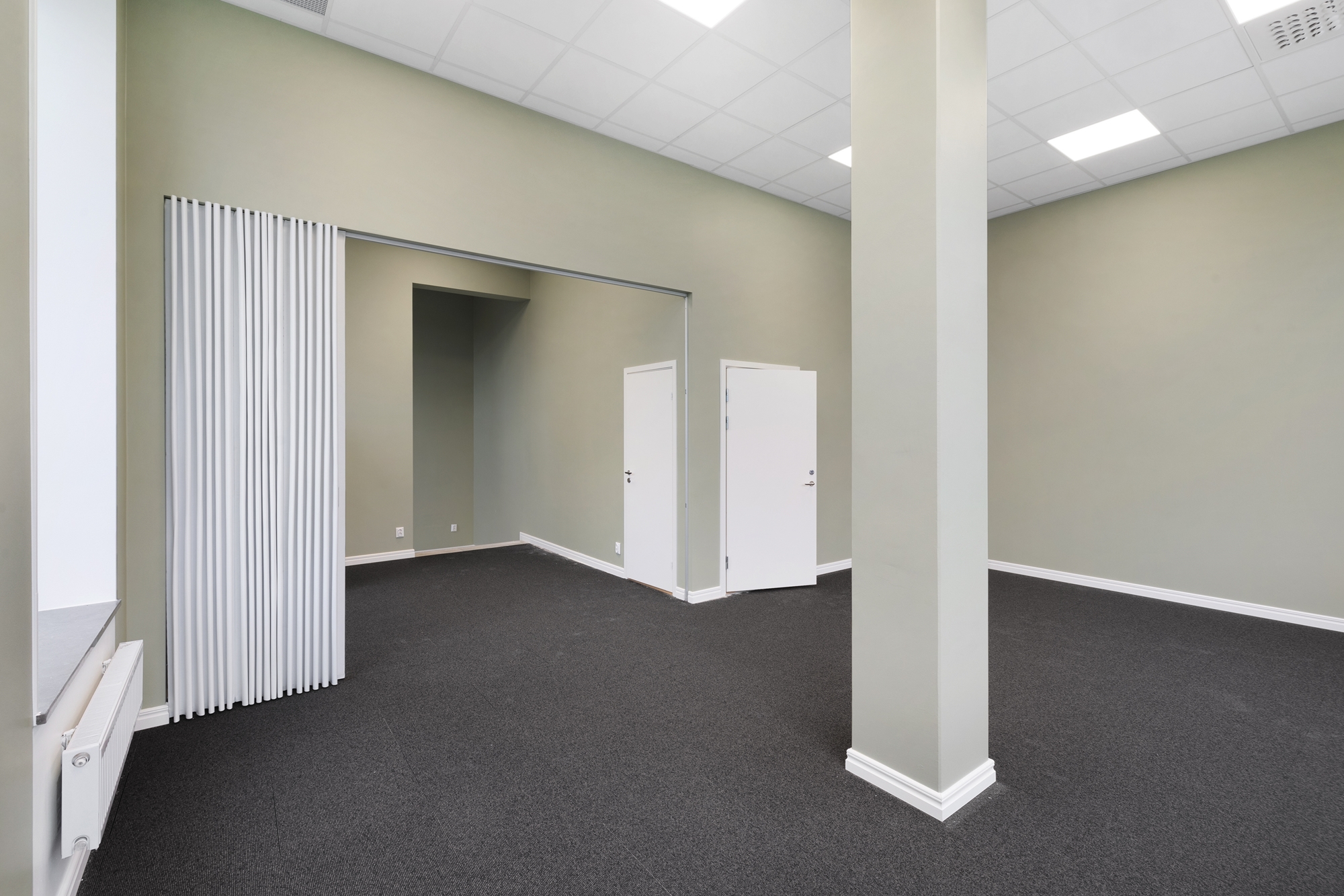 Lokalen har högt i tak, stora skyltfönster och bra ljusinsläpp samt 2 entréer.