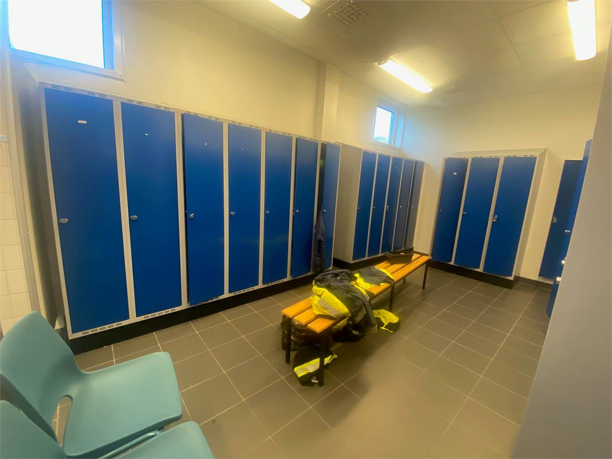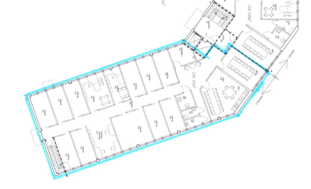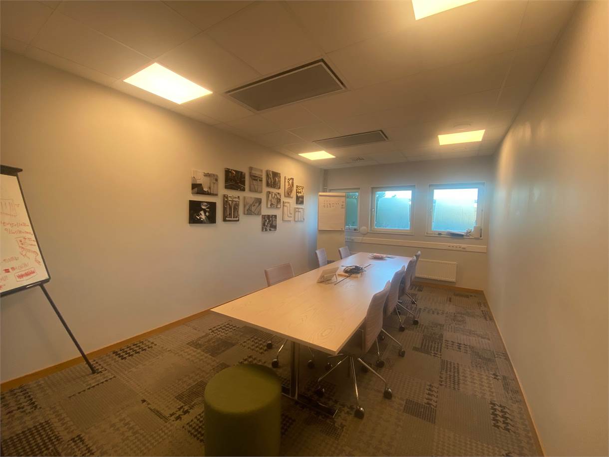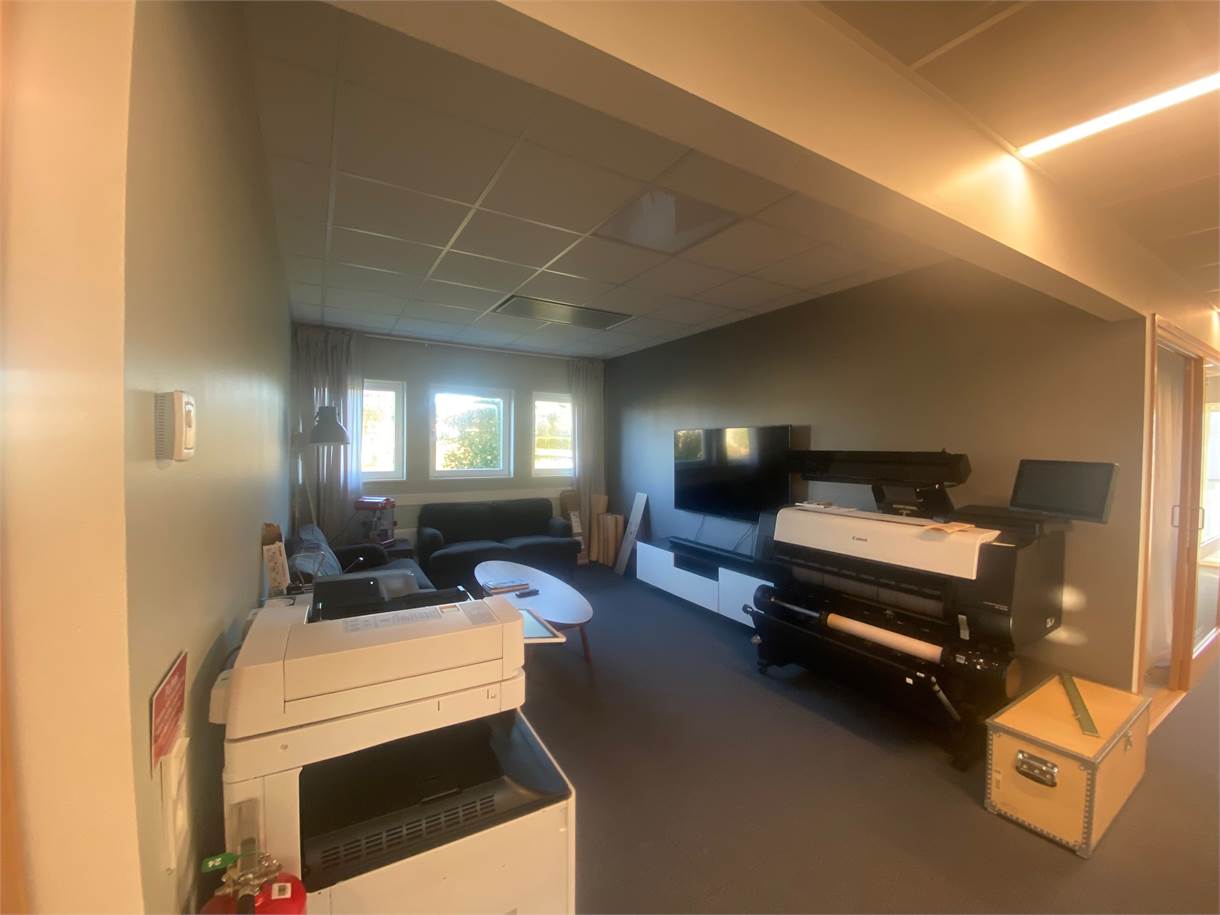 På entréplanet finns ett rymligt lager med markport som underlättar lastning och lossning. I anslutning till lagret finns även ett stort omklädningsrum med plats för cirka 25 personer. På ovanvåningen ligger kontorsdelen, som ger en trevlig arbetsmiljö med god överblick över verksamheten.
