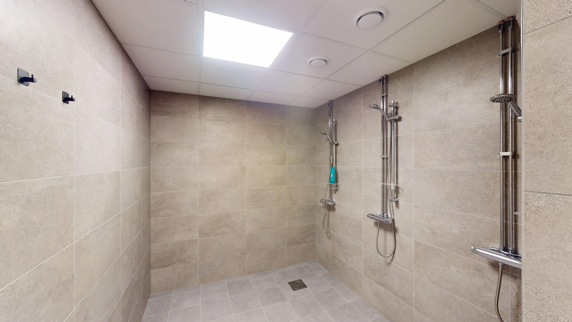 Utöver showroomytorna finns väl tilltagna personalutrymmen i form av pentry, omklädningsrum, WC, kontor samt konferensrum, vilket skapar en funktionell och trivsam arbetsmiljö.