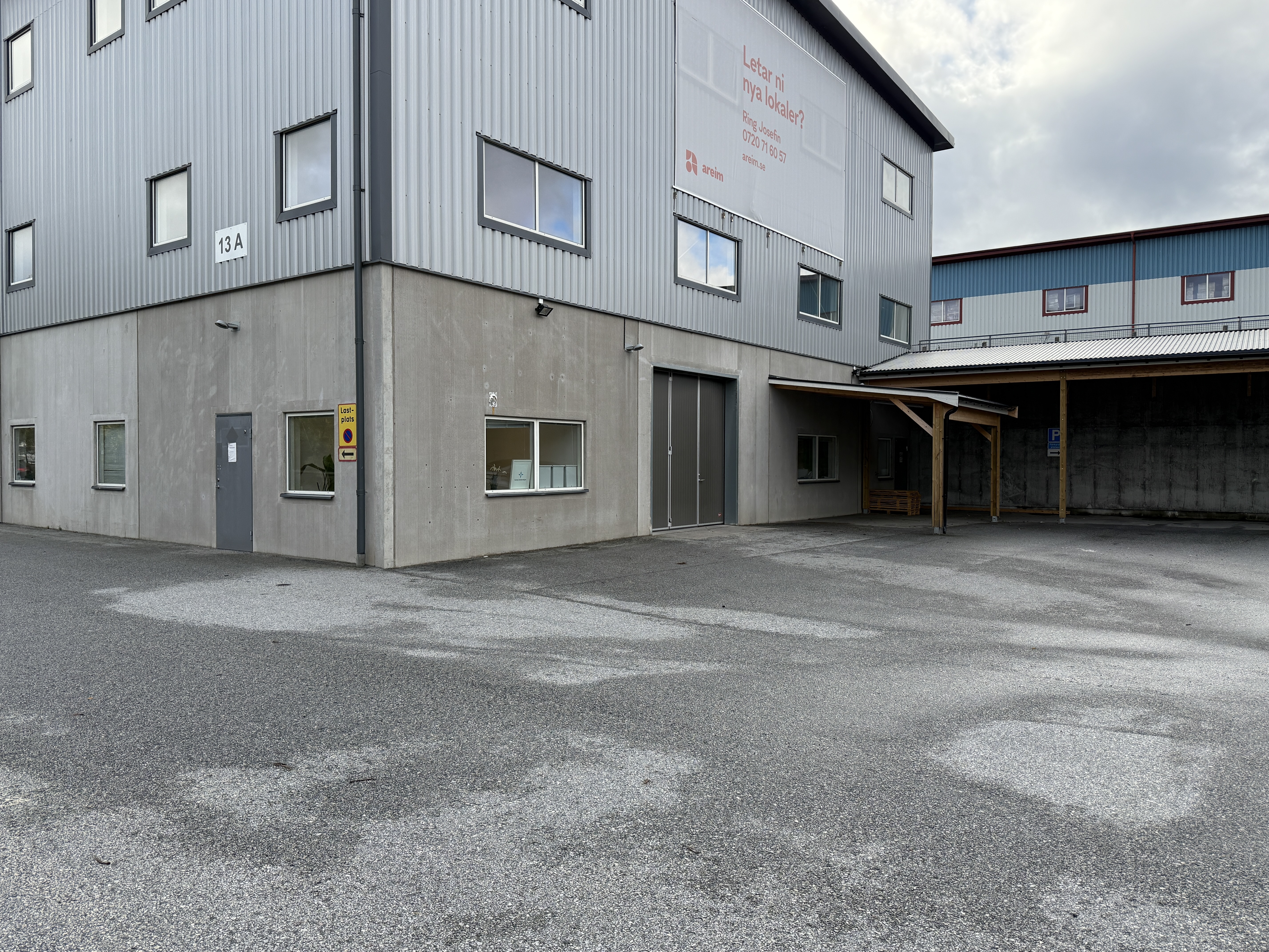 Till lokalen hör dessutom ca 280 kvm asfalterad yta som lämpar sig för uppställning, lagring eller parkering under tak.