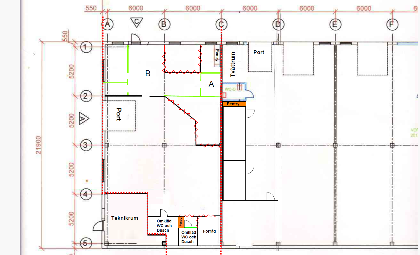 I anslutning till lagret finns två omklädningsrum med dusch – ett av dem utrustat med bastu – vilket gör lokalen väl lämpad även för verksamheter med personal på plats.
