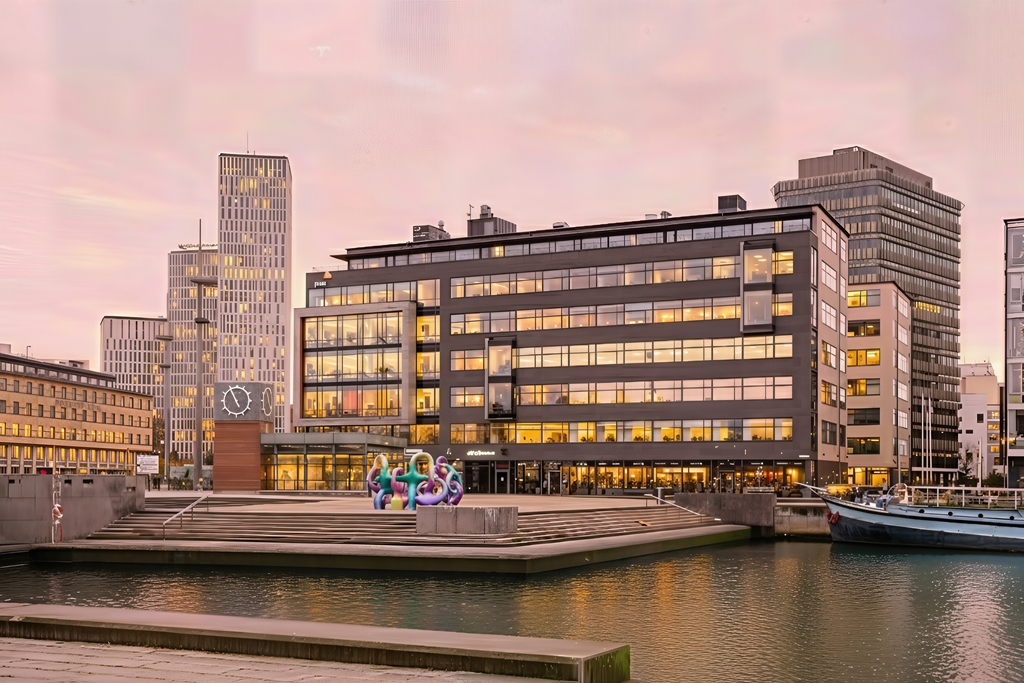 Här kan man från delar av kontoret blicka ut över havet och vimlet vid Malmö C vilket ger en helt fantastisk känsla.