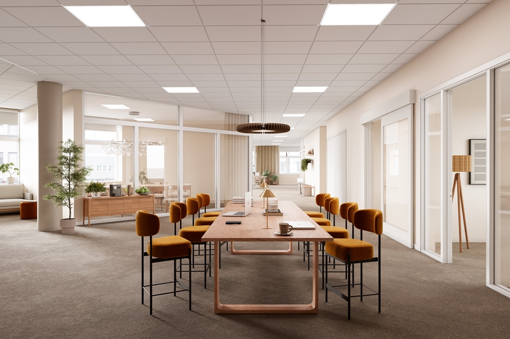 Befintlig planlösning idag är till stor del öppna landskap men självklart med konferensrum och mötesrum i varierande storlekar. I lokalens mitt finns kontorets pentry och där samlas personalen naturligt när det är dags för lunch eller fika.