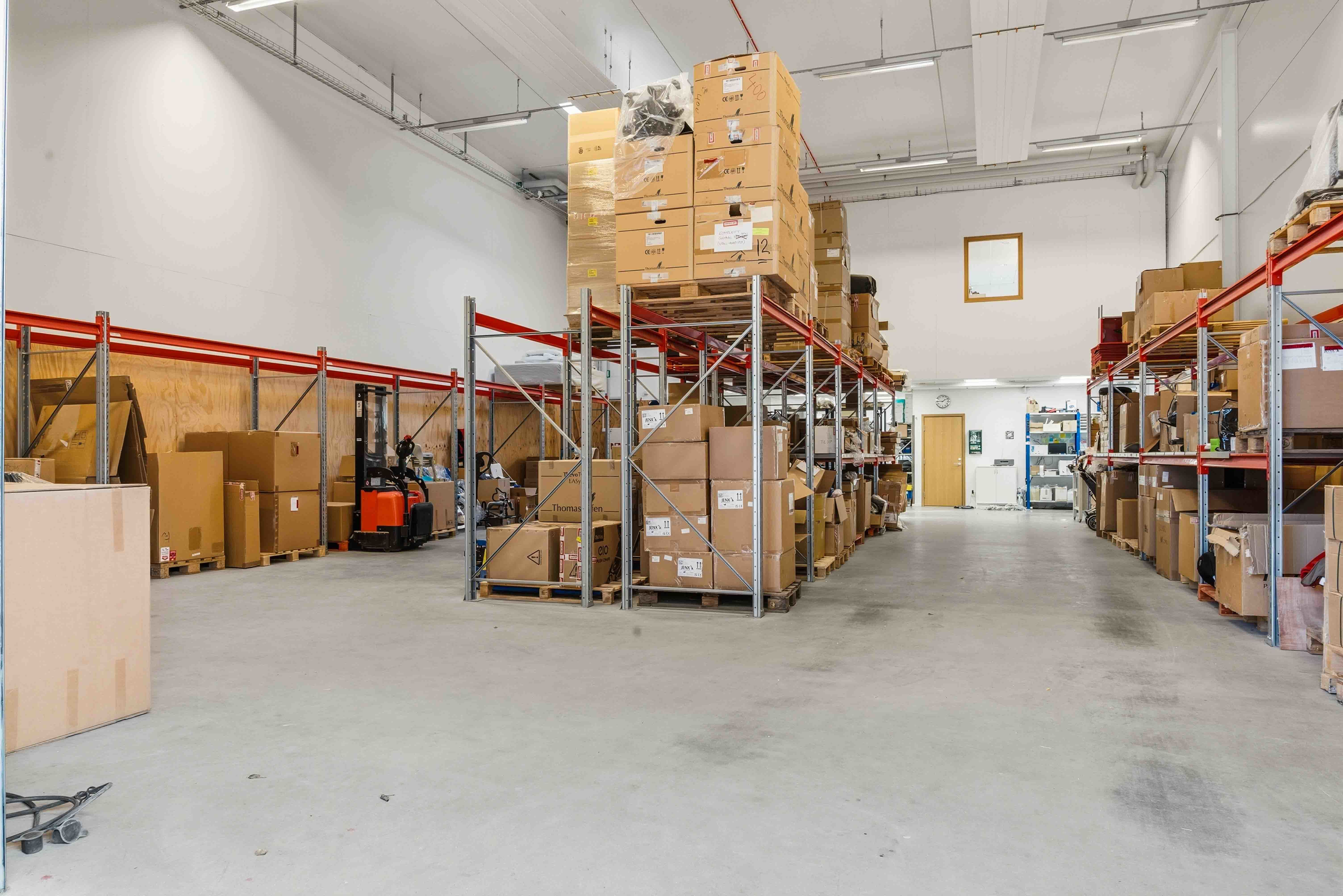 Modern kombilokal i gavelläge – 387 kvm med höglager, kontor och hiss