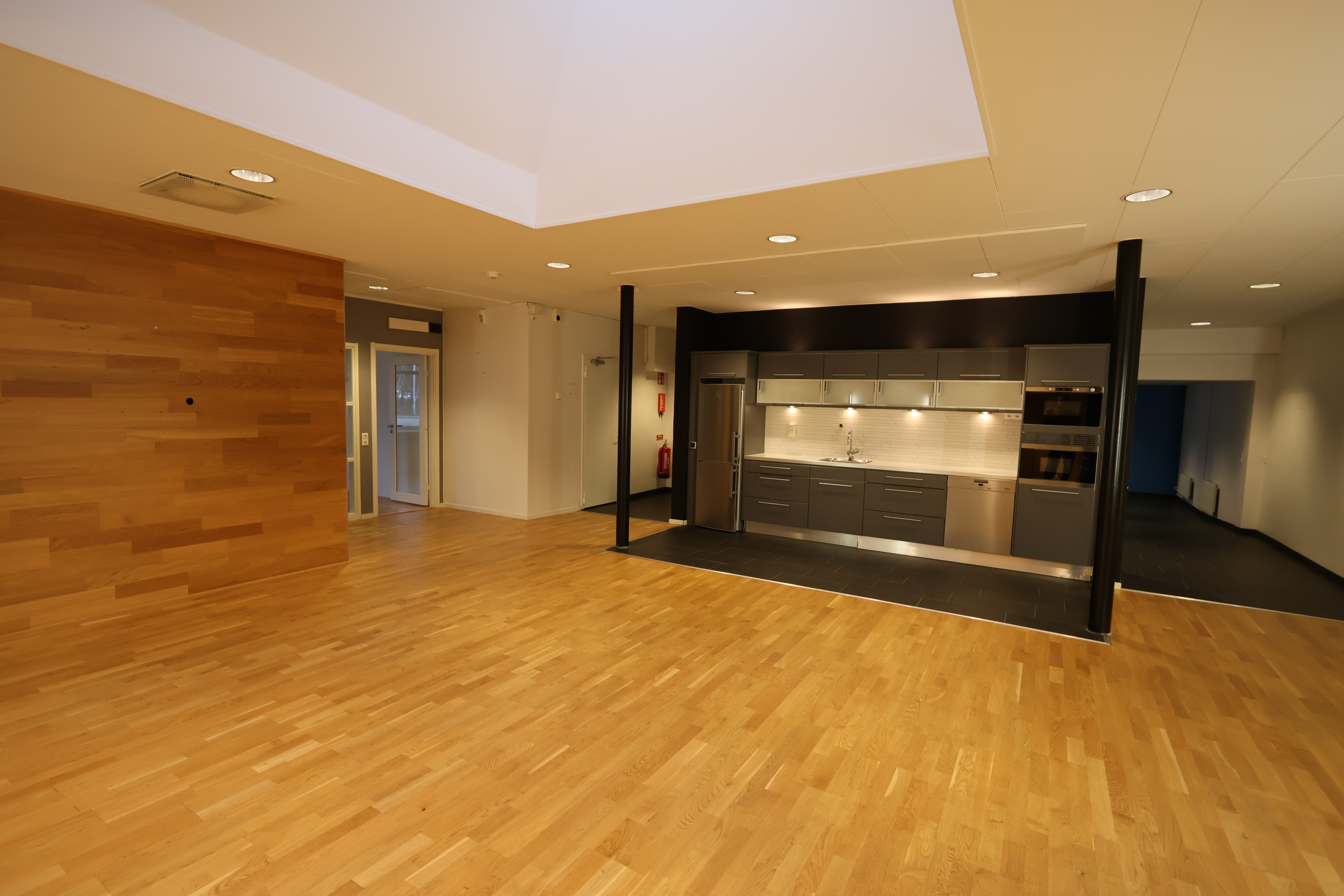 Lokalen går att dela av till 381 kvm eller 688 kvm.