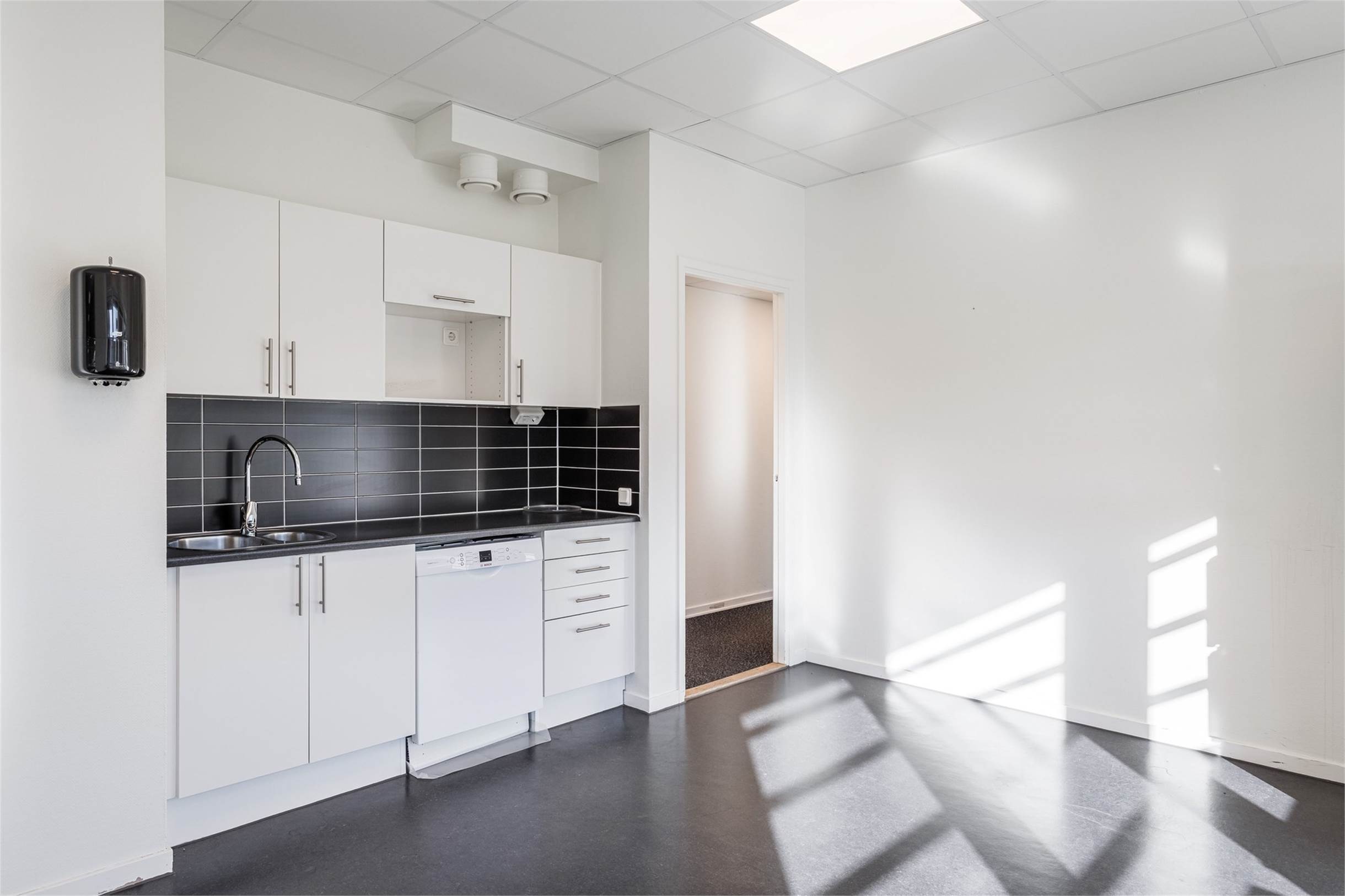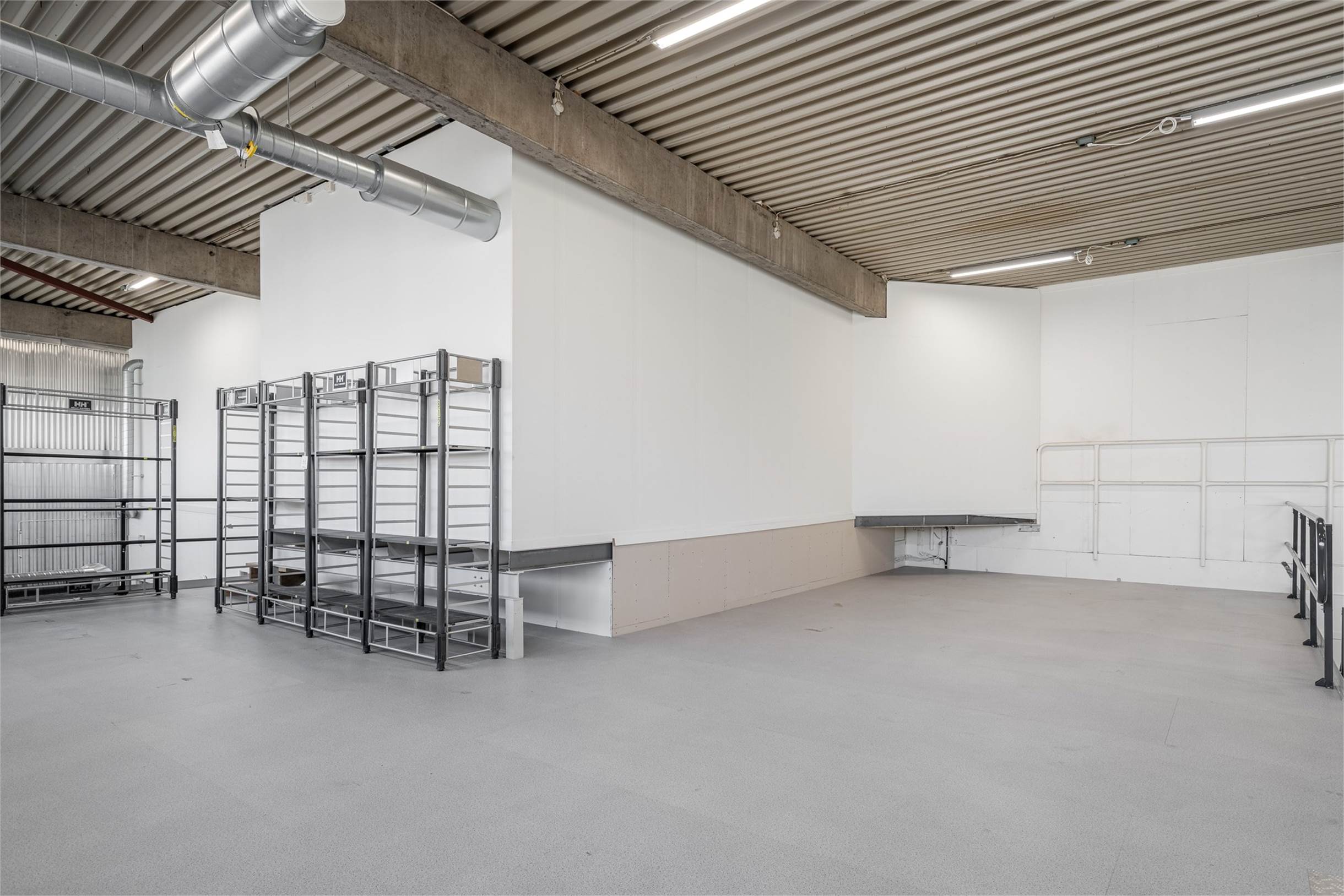 Lokalen består av en kontorsdel, lagerdel med vikport i bakkant och butik i framkant.