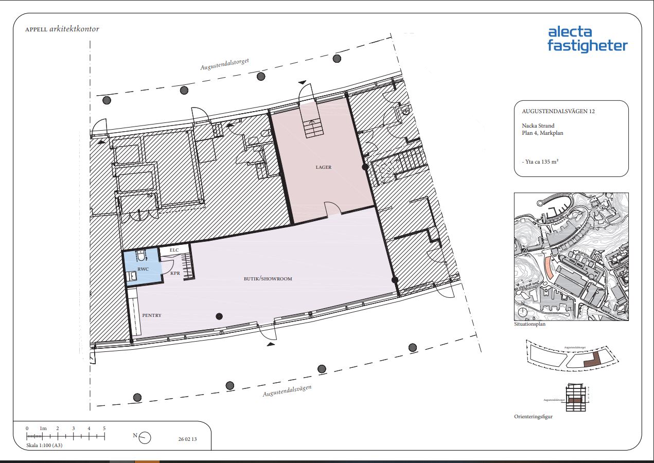 Fin och ljus kontorslokal i markplan i fd butikslokal mitt i centrala Nacka strand. Lokalen har härlig rymd, högt i tak och med stora skyltfönster. Ytan är perfekt för en verksamhet som vill synas tex showrooom, studio, arkitektkontor eller liknande. Här passerar en stor mängd personer dagligen och lokalen ger därför ett mycket bra skyltläge.