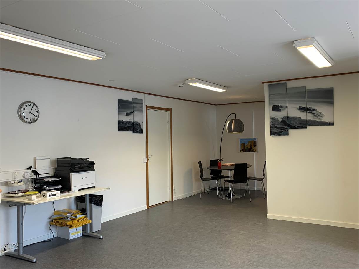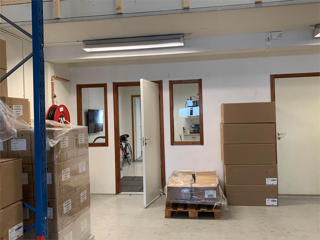 Både kontors- och lagerytorna erbjuder öppna och flexibla ytor med goda möjligheter till anpassning efter verksamhetens behov. I lagerdelen finns en port om cirka 3,5 x 4 meter, vilket möjliggör smidig hantering av gods. Fiber är framdraget i lokalen.
