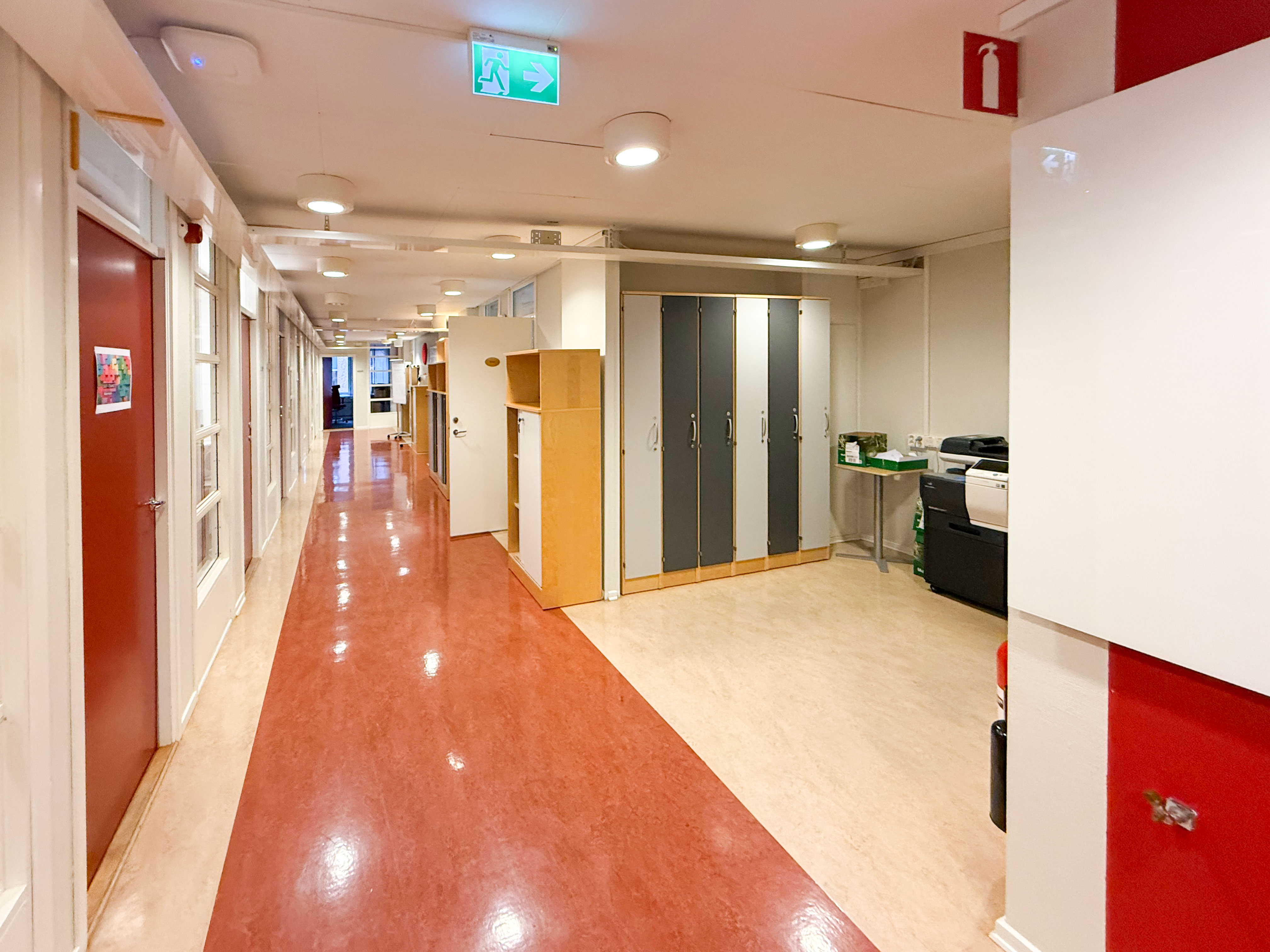 Lokalen är belägen på andra våningen och nås via ett eget trapphus direkt från entréplan, vilket ger en tydlig och representativ identitet. Självklart finns hiss, som dessutom går hela vägen ner till garaget och skapar smidig tillgänglighet för både medarbetare och besökare. Med sitt centrala läge befinner ni er mitt i stadens puls, med omedelbar närhet till handel, restauranger, service och utmärkta kommunikationer.