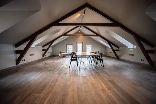 • Vindsvåning med snedtak och synliga takbjälkar