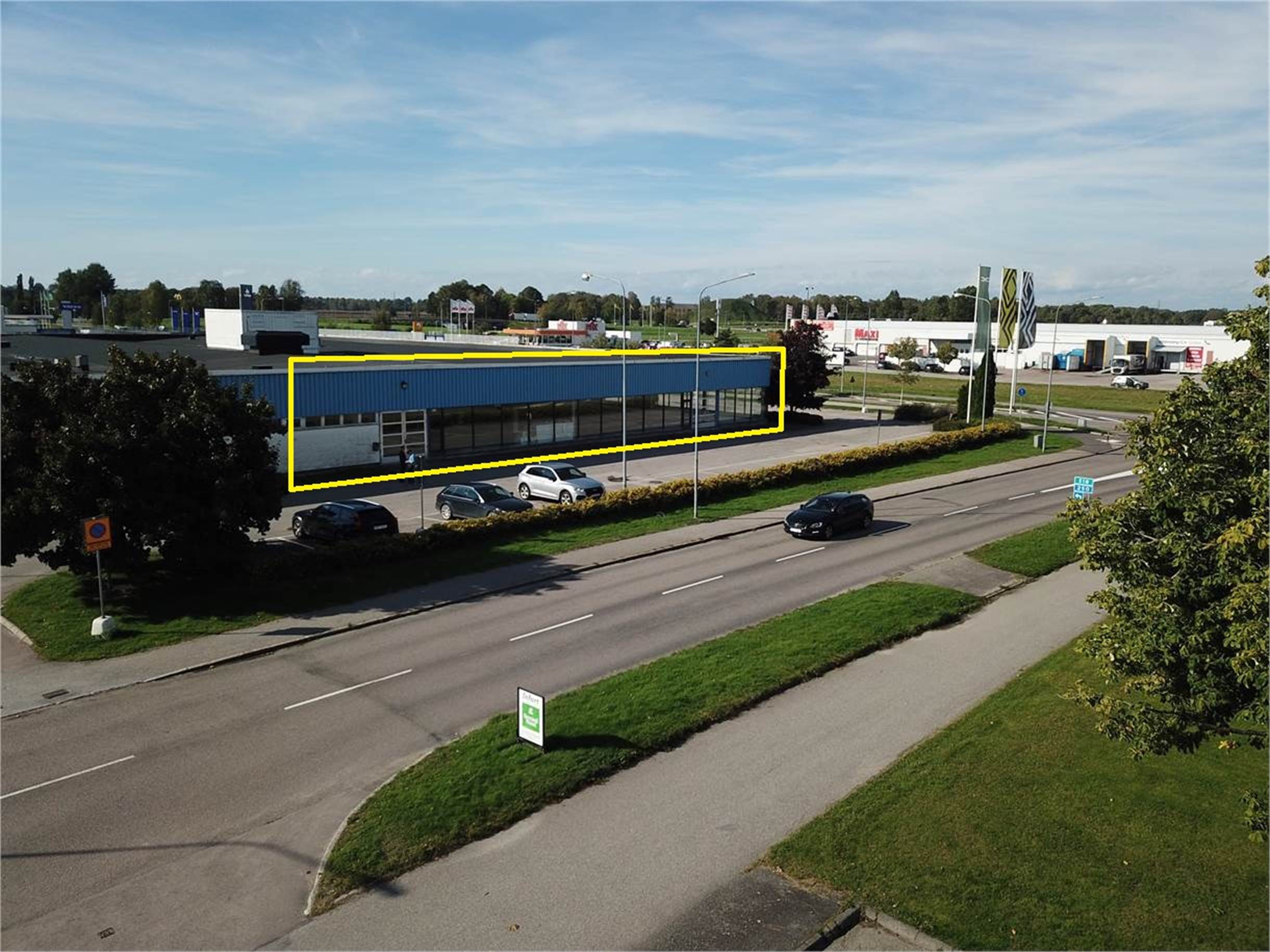 Butikslokal med utmärkt skyltläge i vältrafikerat handelsområde invid E18.