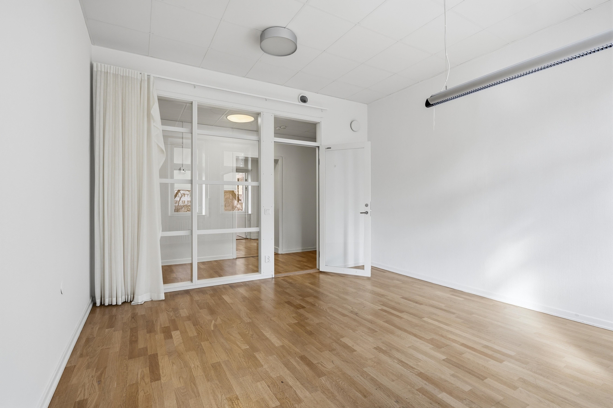 I dagsläget rumsindelat. Många lättväggar gör det möjligt att öppna upp lokalen ordentligt!