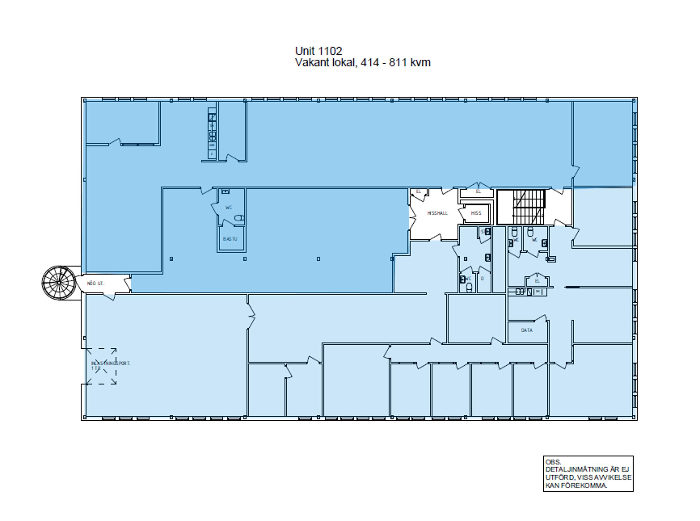 Hela våningsplanet omfattar totalt cirka 811 kvm och kan hyras i sin helhet eller delas upp i två separata lokaler som omfattar cirka 400 respektive 414 kvm.