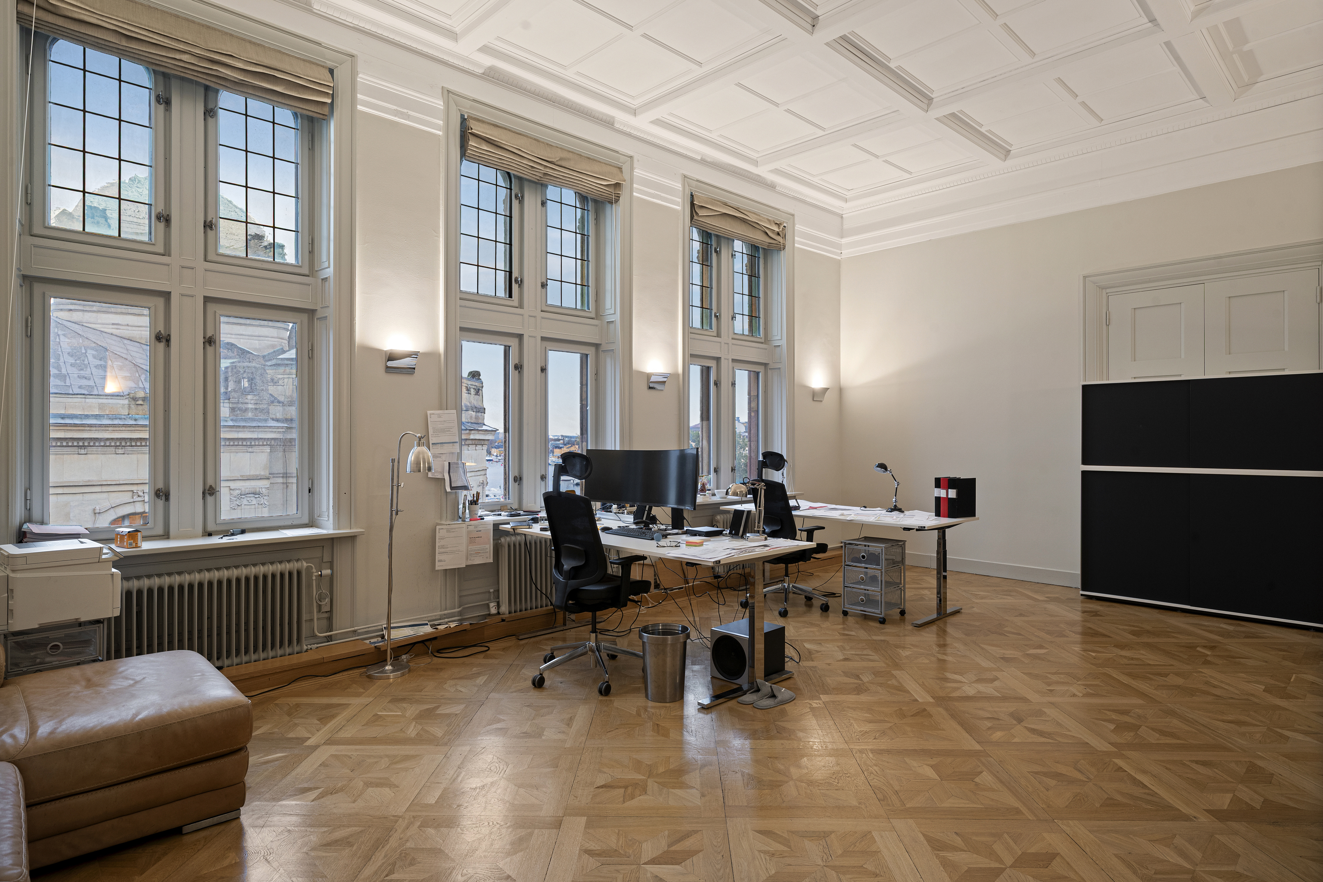 Rummet har högt i tak och stora fönster med utsikt mot vattnet som ger ett fantastiskt ljusinsläpp och en känsla av rymd. Fastigheten är certifierad enligt LEED Silver (2023) och erbjuder en hållbar, modern och representativ arbetsmiljö i hjärtat av Stockholm.